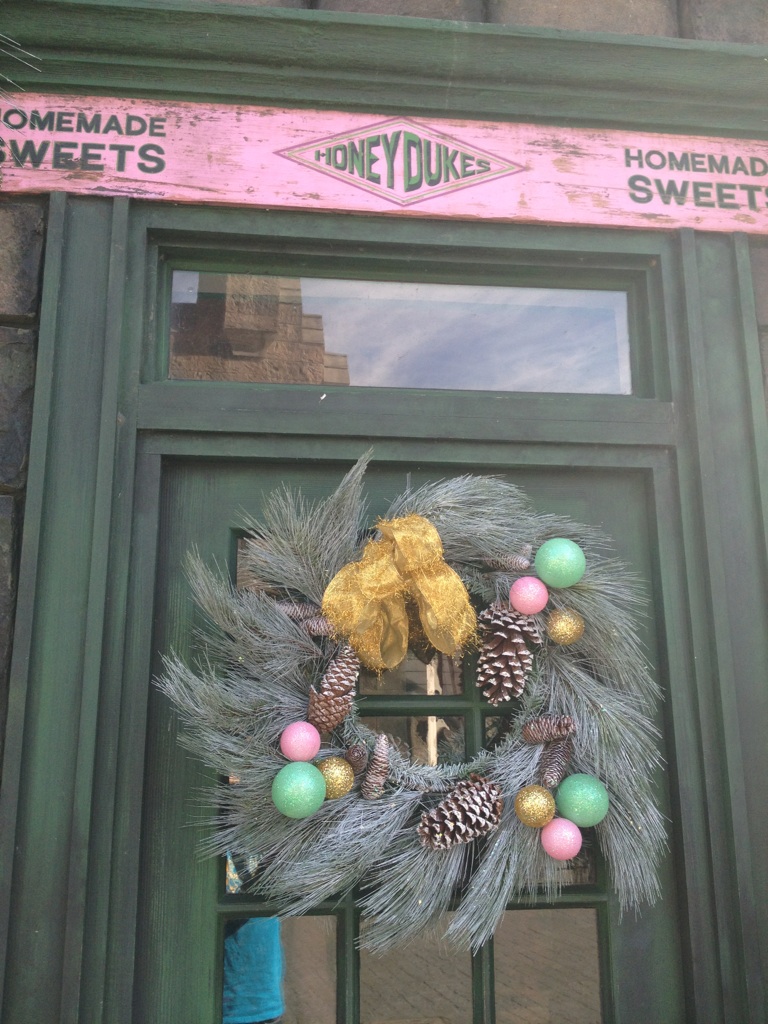 On top of all of the exciting news this week already about the Wizarding World of Harry Potter, it seems they have also decorated the park for the Christmas season. Attendees to the park in Orlando can now visit their favorite shops in Hogsmeade and see many wreaths and garland strewn about. Our regular correspondent, Hilary K., was on site this afternoon and provided us with these 12 exclusive images that we now share with you: