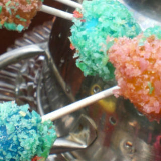 - Unwrap lollipops. Place Pop Rocks into a shallow bowl.