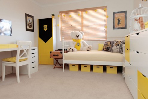 Your bedroom is personal. It’s where you sleep, eat (okay, maybe this one is just me), and spend time with yourself. Your bedroom should be a reflection of who you are, and for Australian blogger Nici’s daughter Isabel, her Hufflepuff-themed boudoir says it all.
