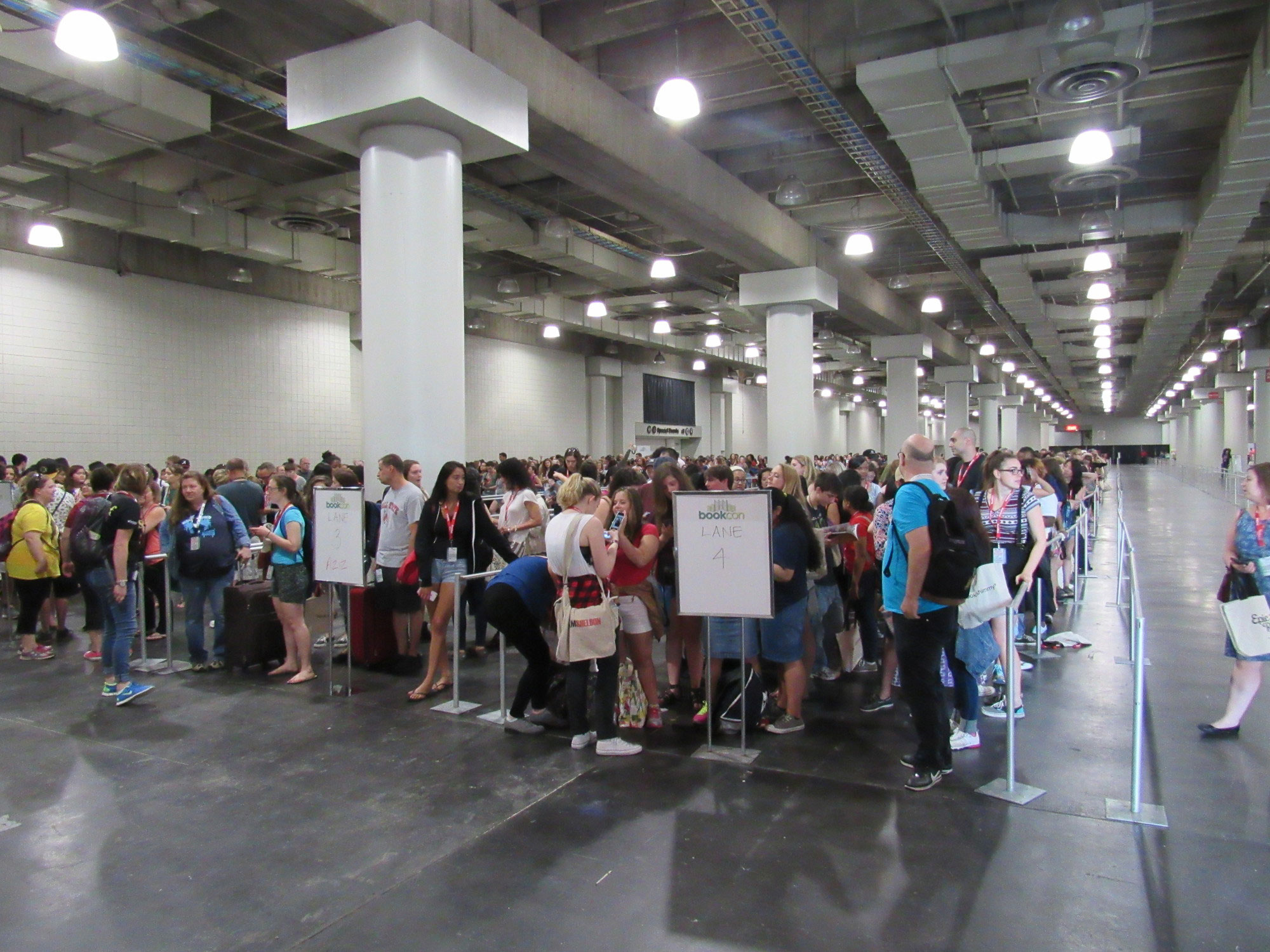 For just the second year in a row, BookCon – a convention for readers to geek out over all things literary – was open to the public, and it was a roaring success! Fans lined up as early as 5 a.m. Saturday morning to wait in line for entrance into New York’s Javits Center, which let attendees inside the building at 8:30 a.m. Once inside, there was still over an hour to wait before fans could either enter the show floor or receive a wristband for one of the high-profile panels (like John Green or Mindy Kaling!). And even though that was an awful lot of waiting… it was all worth it once BookCon officially began!