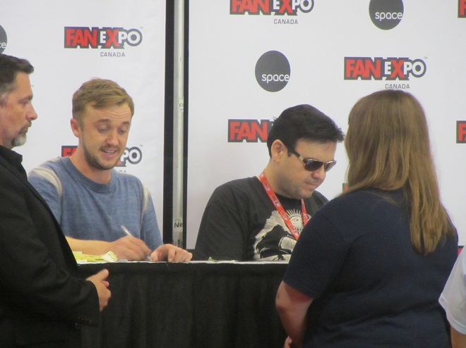 The Potter stars regrettably weren’t giving any interviews, but I did get to briefly meet Rupert, James, and Oliver when I got their autographs. (I previously got Tom’s autograph when he attended Fan Expo in 2011.) All of them were extremely sweet. They seemed really happy to talk with their fans and shook hands with everyone who came to their autograph tables.