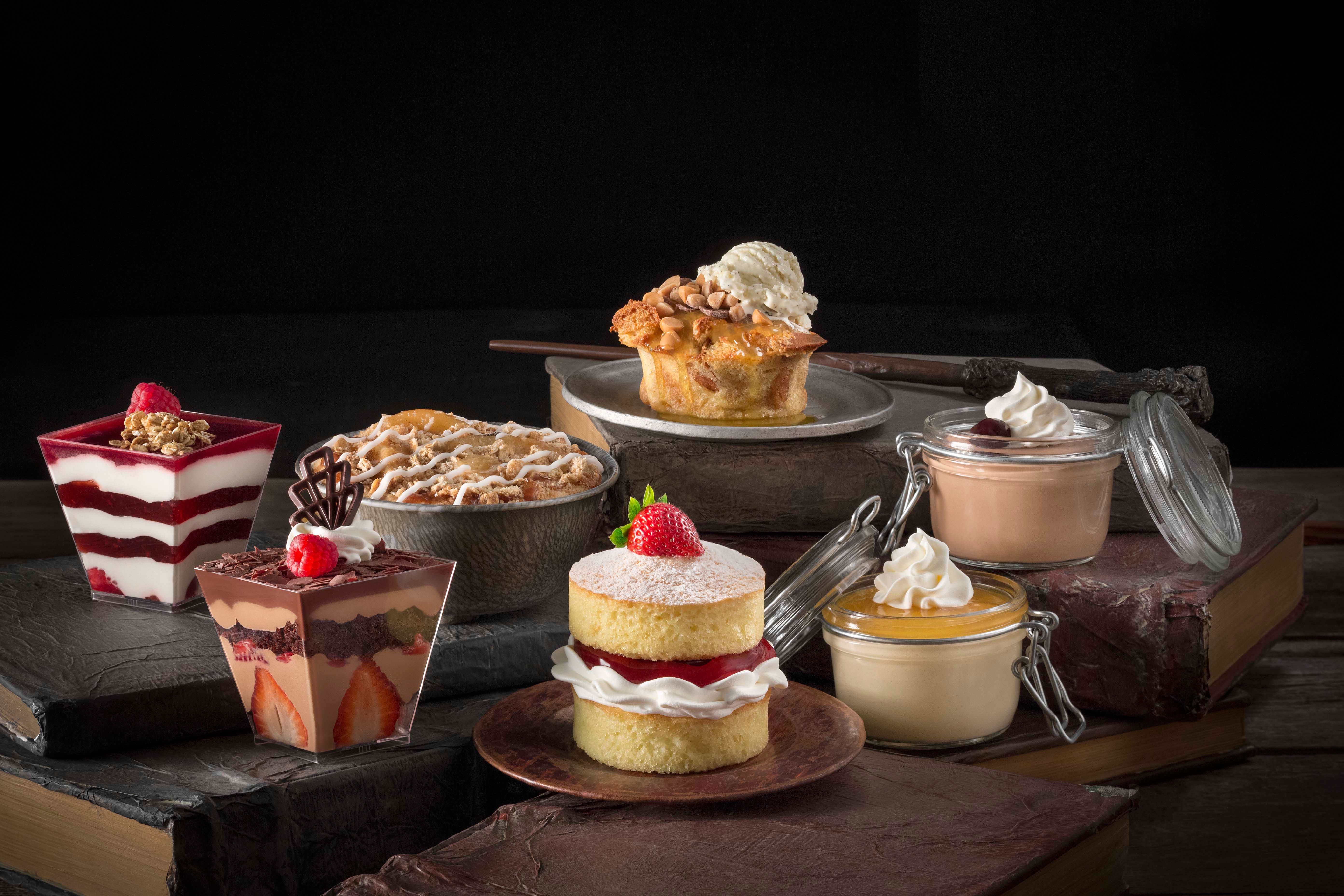 There was the potted cream, which was either butterbeer- or chocolate-flavored, the chocolate trifle, and the sticky toffee pudding. Holy Hufflepuff, you couldn’t go wrong with any of these. My personal favorites were the chocolate trifle, which was three layers – layers of berries, topped with a layer of chocolate mousse and dark chocolate flakes – and the sticky toffee pudding, which is a creamy steamed pudding with toffee, butterscotch sauce, and vanilla ice cream. Needless to say, if you can’t handle a ton of sweetness, I would stick with the chocolate trifle because everything else is a notch above that.