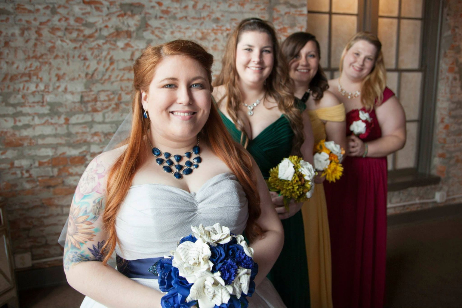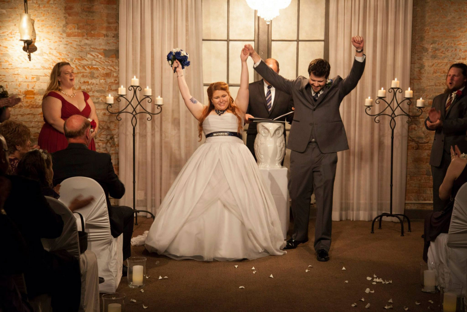 J&J: The biggest change to our plans was the date itself. I always wanted a fall Harry Potter wedding so when we got engaged in May 2013 we decided on September 19, 2014 (Hermione's birthday). However, as the plans started to be set in motion, we decided to push it to June 26, 2015 (Amy Pond and Rory Williams' wedding anniversary in Doctor Who) to have an extra tax return to budget with. And I got to shop lots of fall clearance sales for the look I wanted! It was a tough decision to make. We couldn't wait to be married! We almost eloped a year before our wedding but it was all well worth the wait.