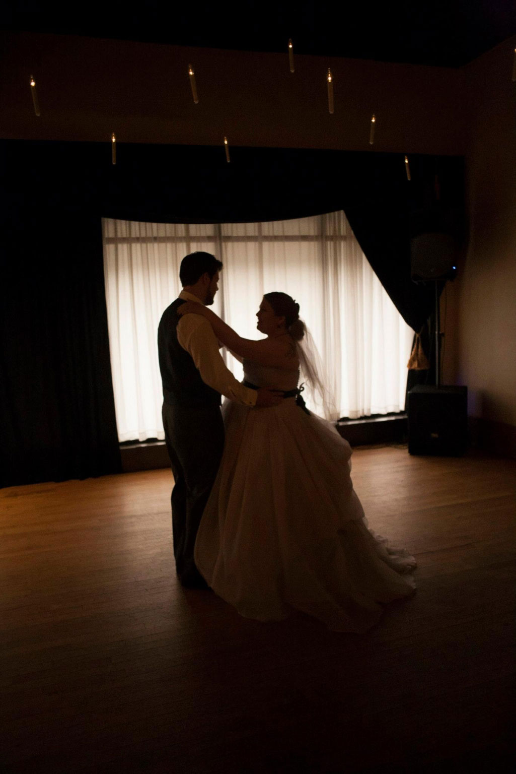 The couples exited to the sounds of Quidditch World Cup fanfare and made their way to the reception, affectionately dubbed the “Weasley stomp.”  The butterbeer flowed (simple cream soda and butterscotch schnapps) alongside a pumpkin cake topped with a Golden Snitch. Those who wanted to grab some grub could retreat to the themed tables.  The Gryffindor table was comprised of faux-gilded mythological statues, Hufflepuff’s bore strange plants, Ravenclaw’s was adorned with books and bird cages, and Slytherin’s would not be complete without potion bottles.