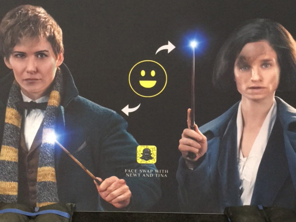 - The booth had places where you could do Snapchat face-swaps with the main characters.