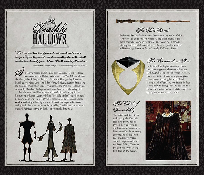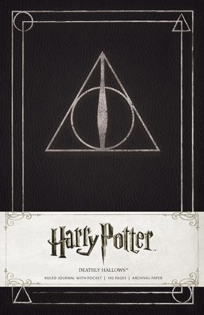 - The Deathly Hallows stationary set includes a hardcover ruled journal, a wax stamp, two sticks of sealing wax, letter-writing paper, envelopes, and a paperweight, all inscribed with the Deathly Hallows symbol. This set is a collectible for any Potter fan, and even the box that contains the set is a thing of real beauty!