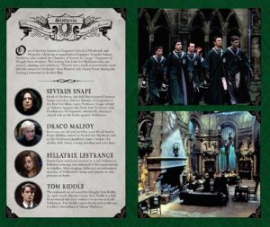 Inside the travel journal are a few features not seen in the others. In the front is a scene depiction of Hagrid and Fang, waiting for all the students to arrive at Hogsmeade Station. Another secret fold-out reveals a ticket from Platform 9 3/4, a Hogsmeade Station Timetable and Fares brochure, and some brief information on magical travel and what the journal is for – to record your travels across the world and document any magical creatures you might encounter along the way!