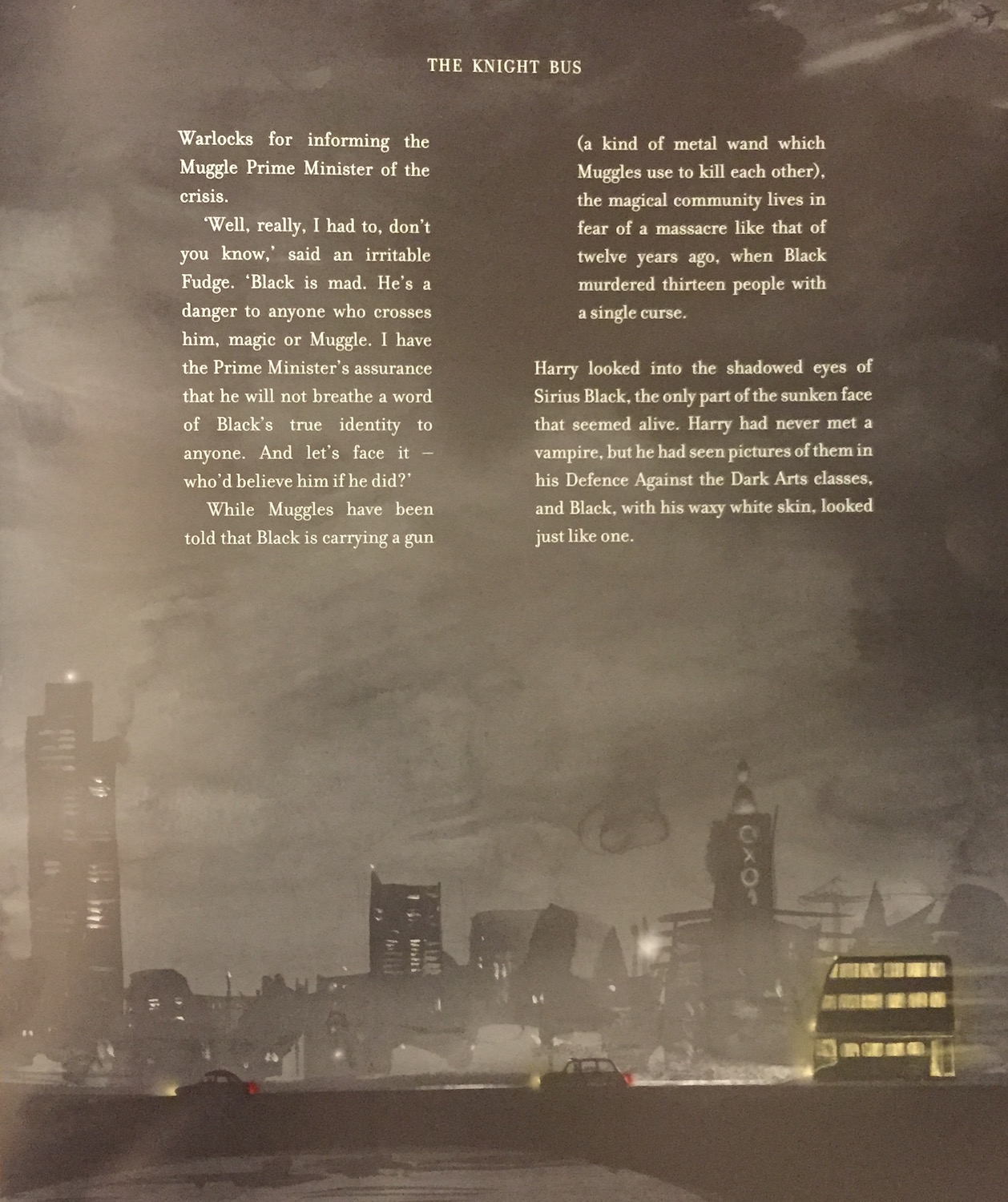 This book is, like the first two, nothing short of stunning – Jim Kay’s attention to detail is unbelievable, with some exquisite two-page drawings that add to the overall feel of the book by really providing a landscape for the scenes within. Moments in London are accompanied by amazing drawings of the London skyline, and this continues throughout the book. New characters are introduced, as are some of the exciting new locations the trio explores within and around Hogwarts. Many of the chapters have themed backgrounds throughout, and in all, it is an absolutely gorgeous book.