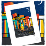 This Saturday, visitors to the House of MinaLima will have the opportunity to bring one of MinaLima’s images to life. The image in question is the limited-edition print “Twosome on a Tandem,” seen below, in two different versions.