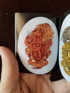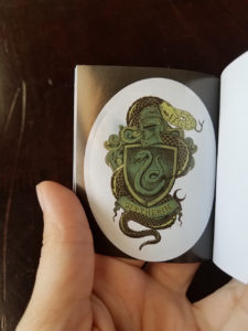 The kit also includes a small sticker book, which is mostly standard fare except for four stickers with the Gryffindor, Hufflepuff, Slytherin, and Ravenclaw crests. I’ve never seen exactly these designs before, and they’re very striking. The Sorting Hat kit is available now.