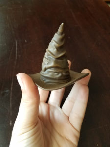 Some fans might remember an earlier version of the Sorting Hat kit (are we showing our age?), where the Sorting Hat was a kind of Magic 8-Ball. In this updated version, you can press a button, and the Hat will shout out one of the four Hogwarts Houses. In my minute or two of experimentation, it seemed like the Hat will cycle through all four Houses before repeating, but the order in which they’ll be called out is unpredictable.