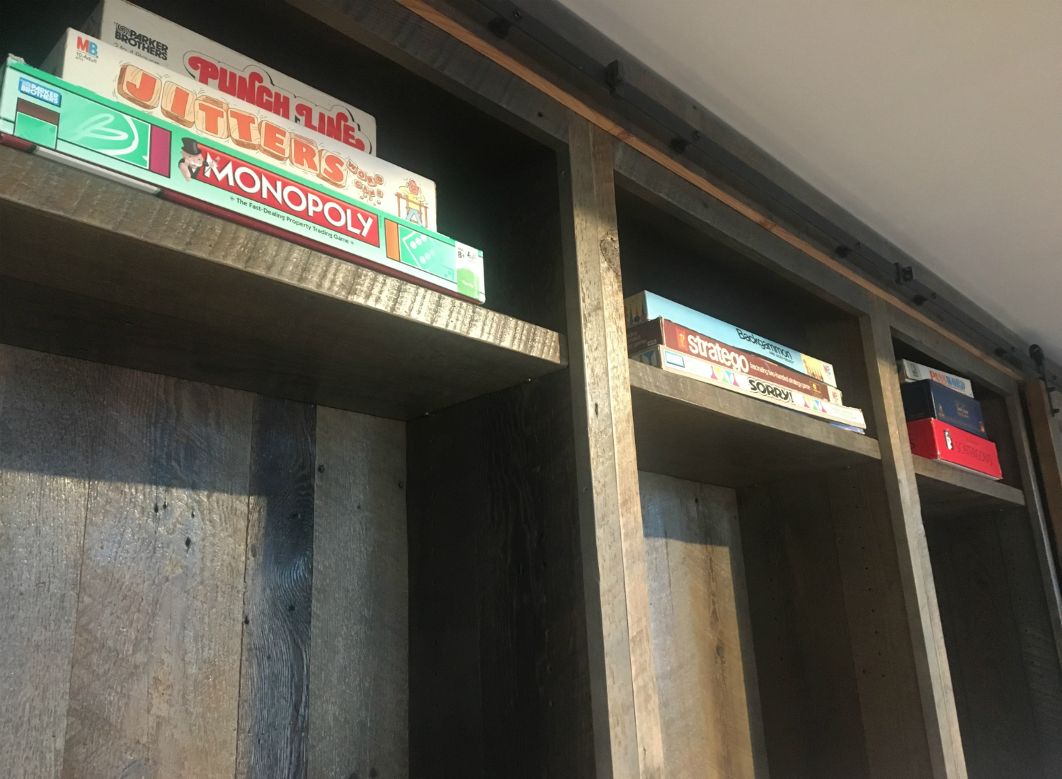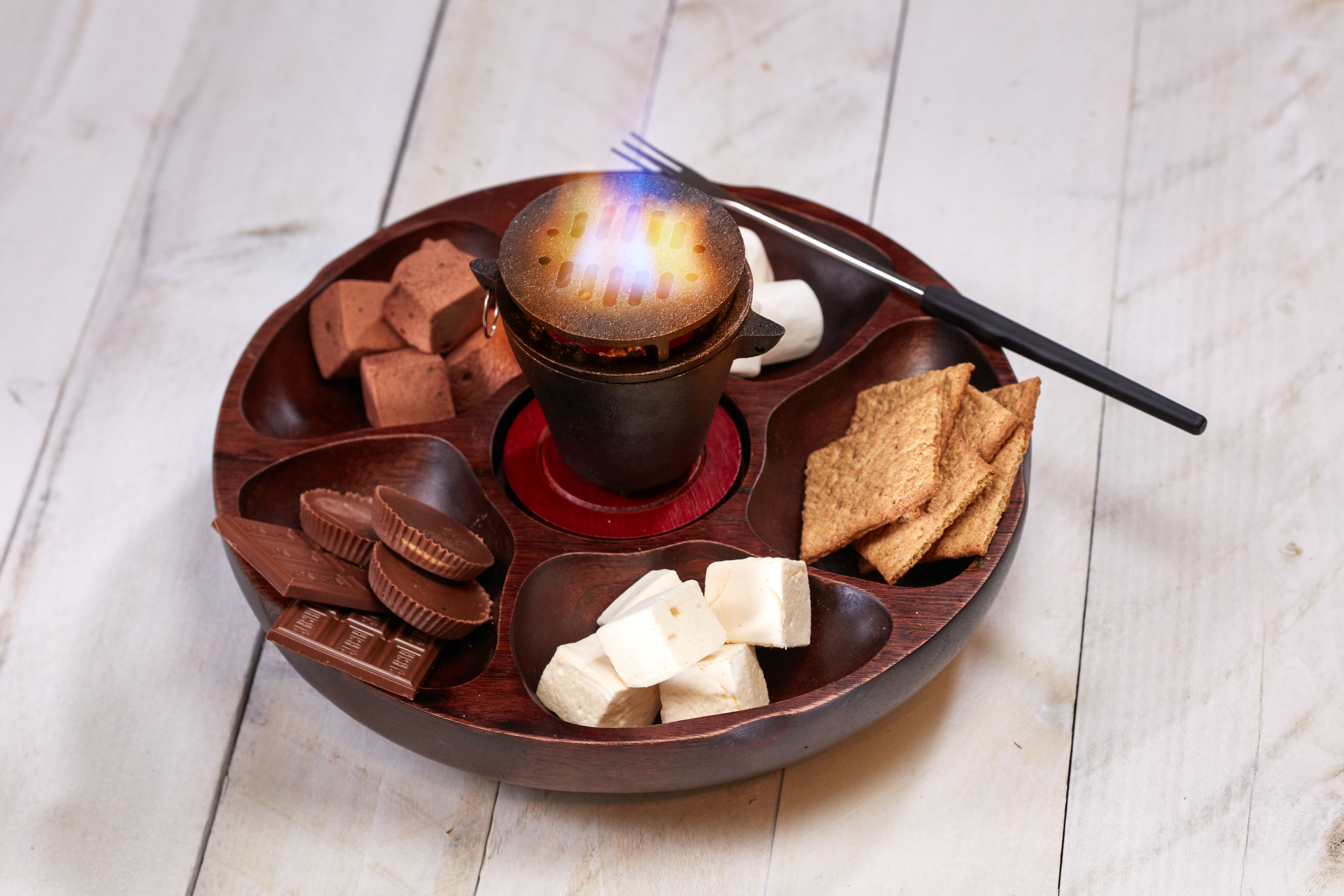 Between the two of us, we sampled the bison burger, lamb slider, smoked brook trout dip, campfire chili, brook trout, BBQ shrimp with cornbread, pork belly mac ‘n’ cheese, and coleslaw. These were followed by chocolate cherry flourless cake with bourbon ice cream, apple pie with vanilla ice cream, and deconstructed s’mores in both vanilla and chocolate flavors. The bar highlighted bourbon-based and vodka-based cocktails, putting a spin on classics such as an old-fashioned and raspberry lemonade. As we tasted our way around the restaurant, we spotted board games and a homey fireplace to emphasize that lake house atmosphere.