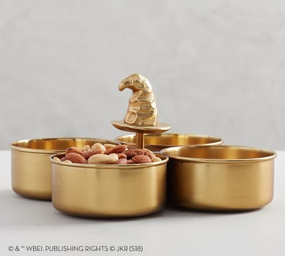For Potter-themed festive decorations, Pottery Barn has released a collection that rivals Hogwarts at Christmas. Included in the collection are a Christmas garland, a Golden Snitch snack bowl, Hogwarts House stockings, a Sorting Hat snack serving dish, a Hogwarts festive mug, Snitch string lights, a variety of ornaments, and much more.