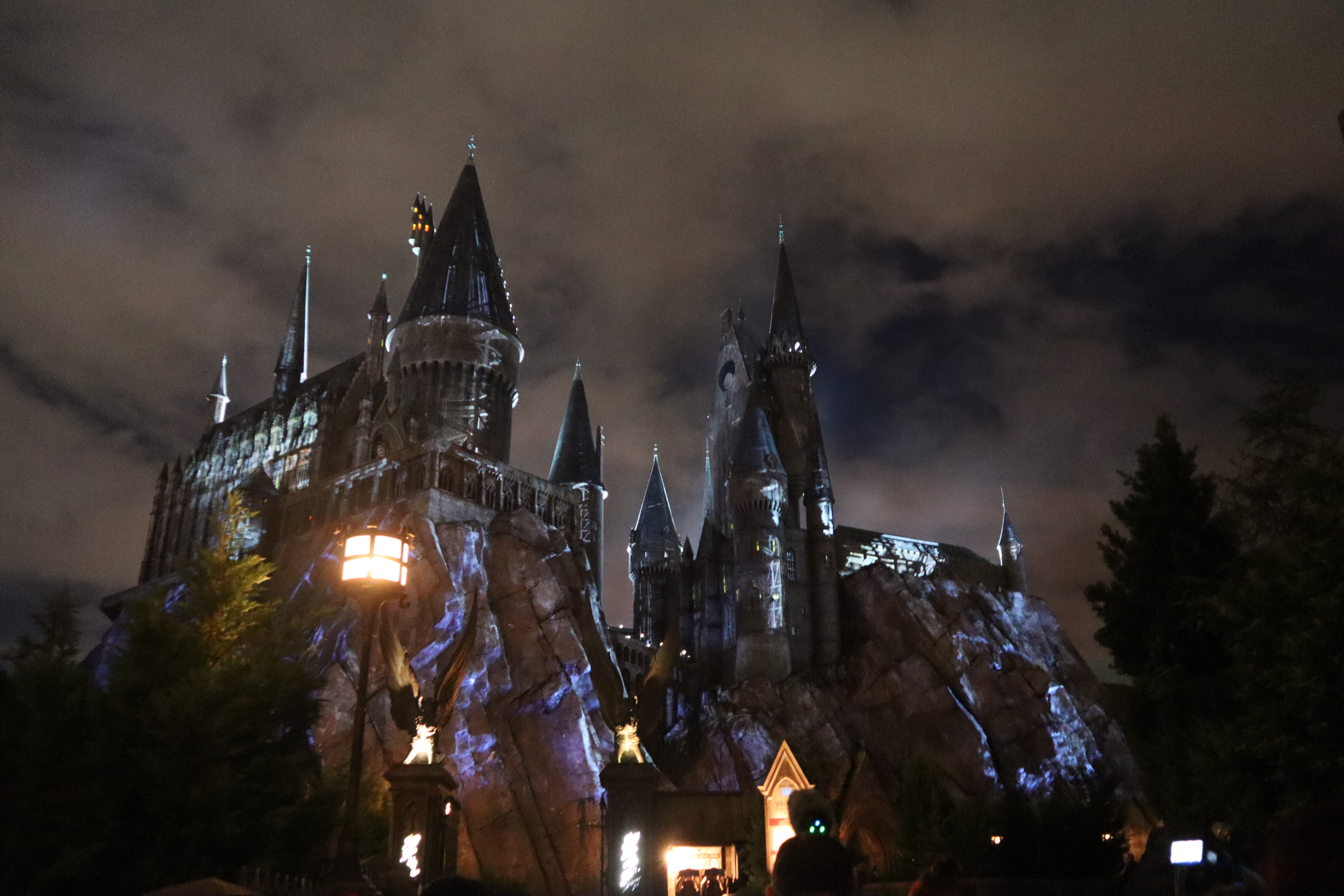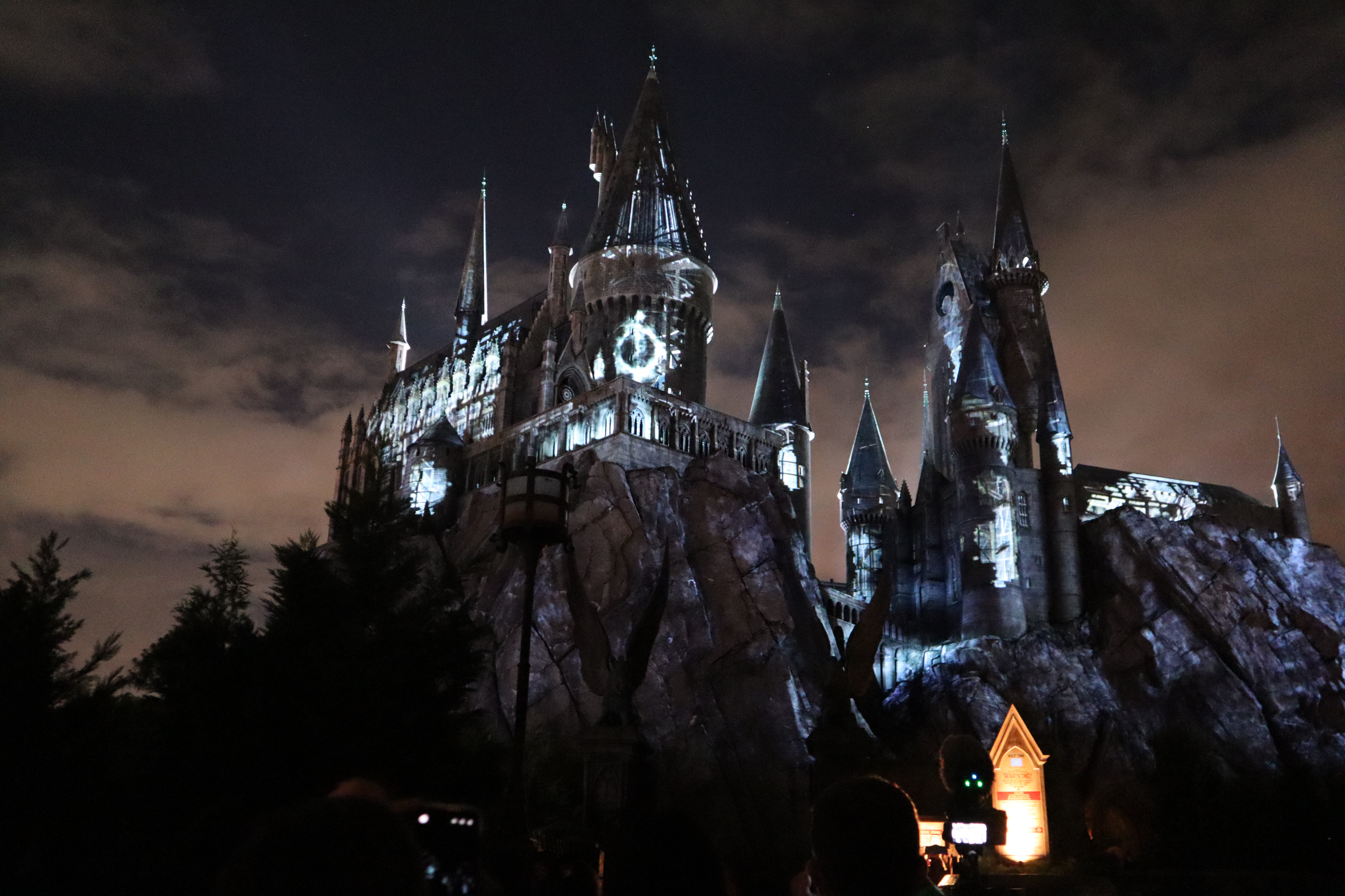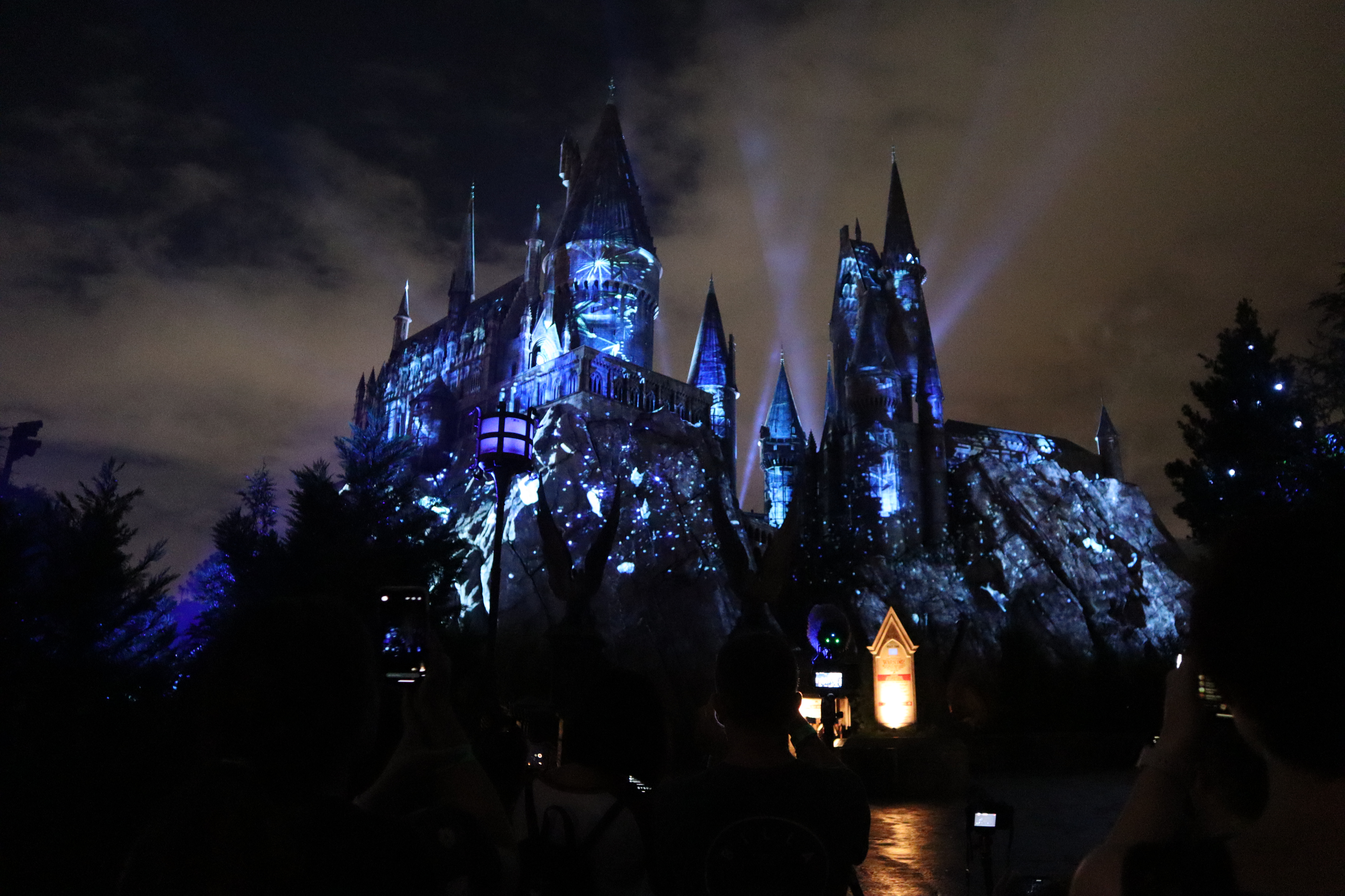 With our hearts in our stomachs and our fists clenched, Dumbledore’s voice was suddenly heard echoing through the streets: “Happiness can be found, even in the darkest of times, if one only remembers to turn on the light.” We looked up to see the castle being rebuilt, and the music swelled as a majestic stag Patronus appeared at the top of Hogwarts. The show ended with a few fireworks indicating that good always prevails, and the lights returned all around us. We had to contain ourselves and not cheer too hard (if you saw the Twitter livestream, you may have witnessed the play-by-play of our excitement).