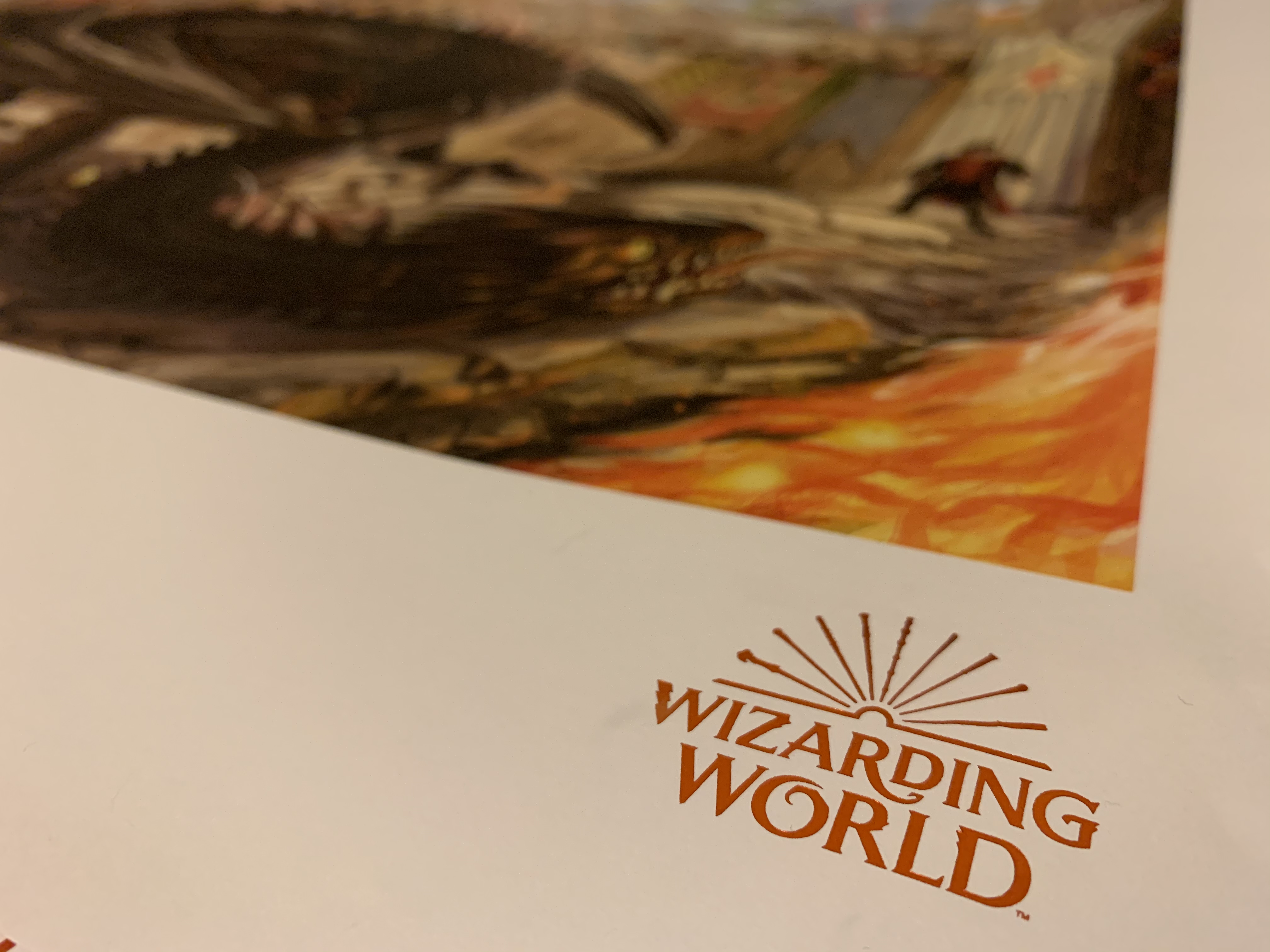 The poster details the first challenge in the tournament, when Harry first walks into the dragon pit and sees the Hungarian Horntail guarding the desired egg. Surrounding the two are the stands full of fans and members from the opposing wizarding schools. Noticeable in the front row are Snape and Dumbledore. The detail of this scene is vivid and the epitome of bringing the text to life.