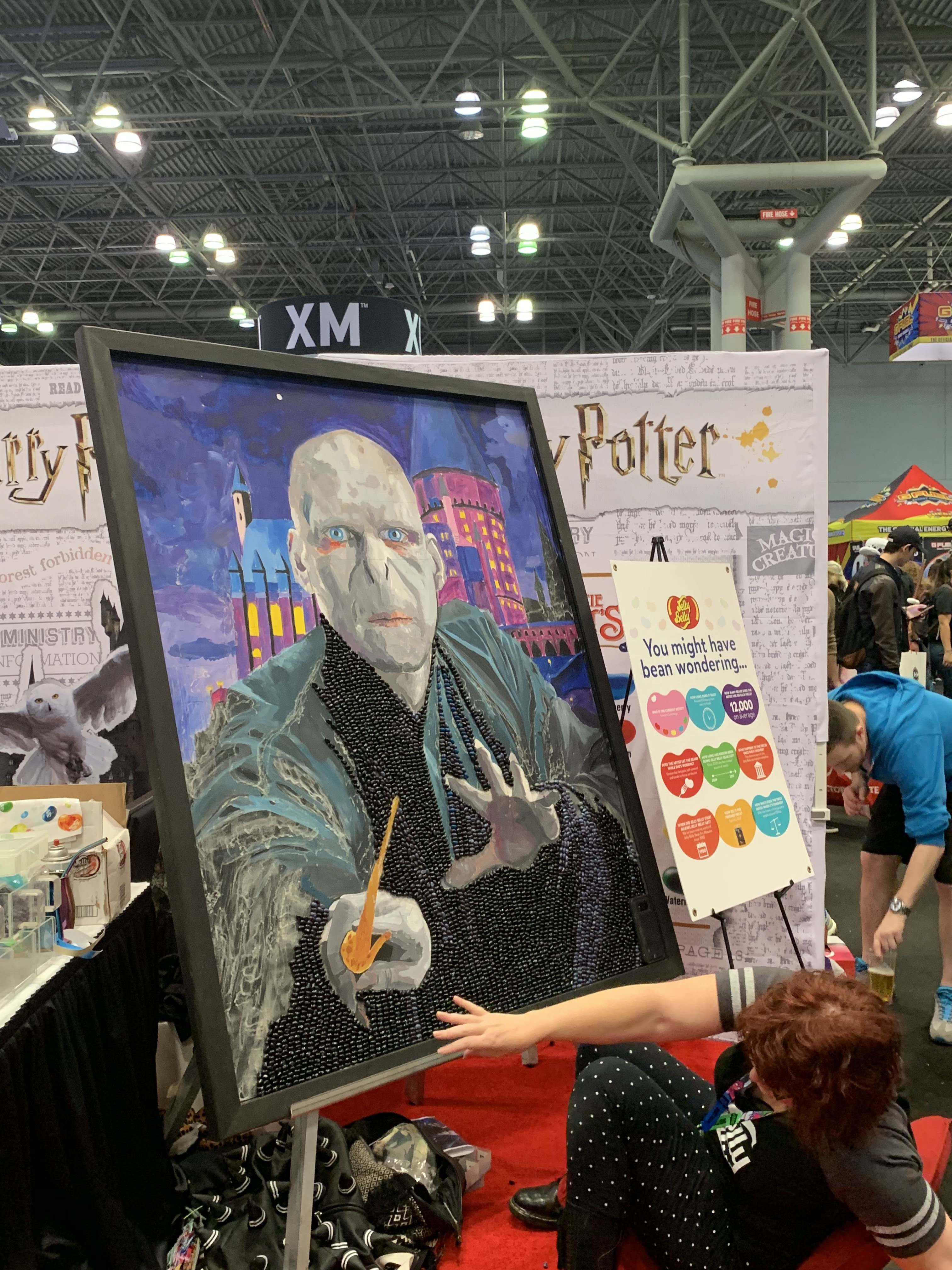 Kristen Cummings is back at the Jelly Belly booth (#436)! Last year, we interviewed Cummings as she worked on creating a portrait of Harry Potter out of jelly beans. This year, she is creating a portrait of Voldemort. When you stop by the booth, you can see her Harry Potter and Hermione Granger portraits as well as check in on how Voldemort is coming along. Don’t forget to pick up some Wizarding World candy while you’re there!