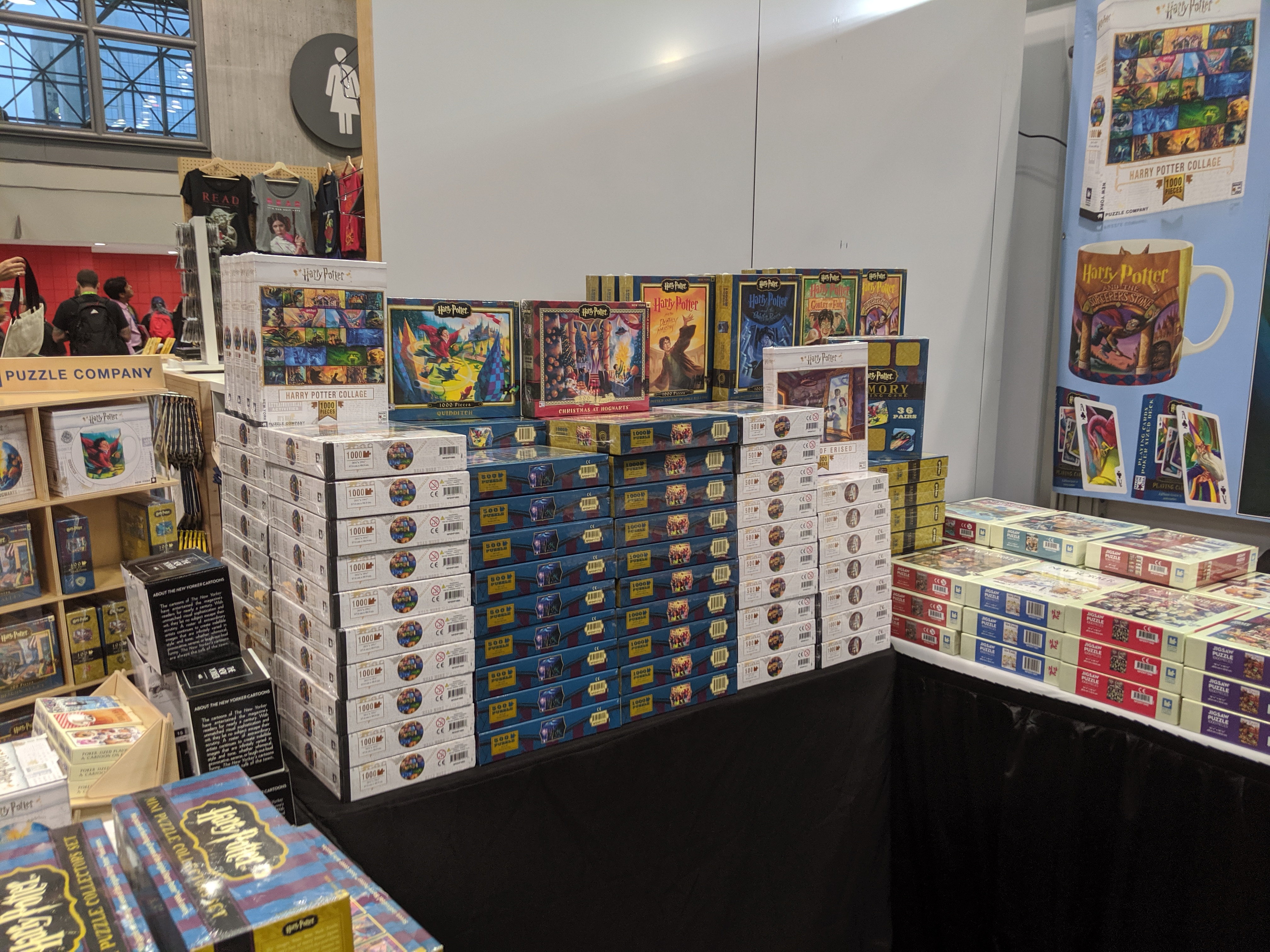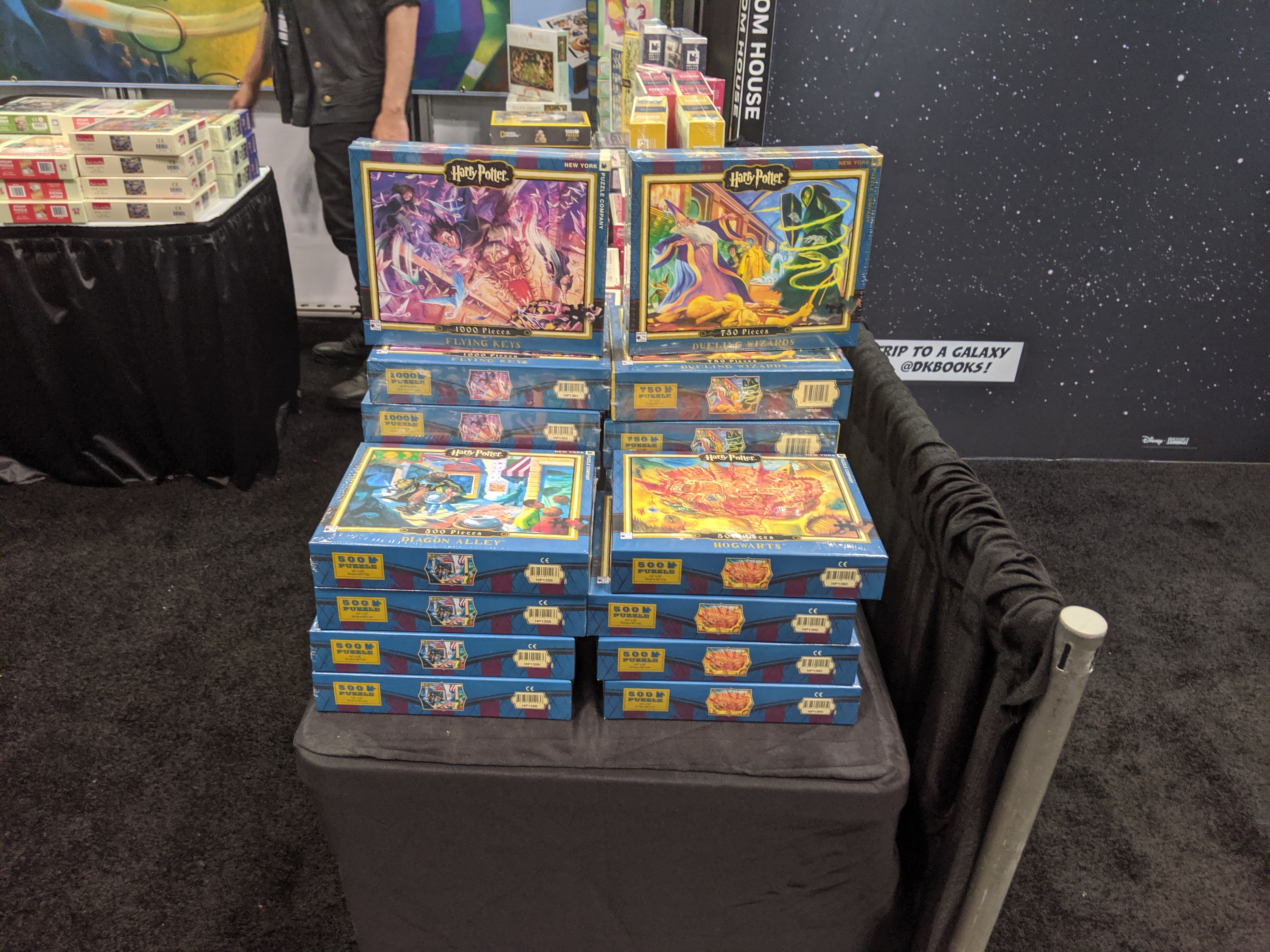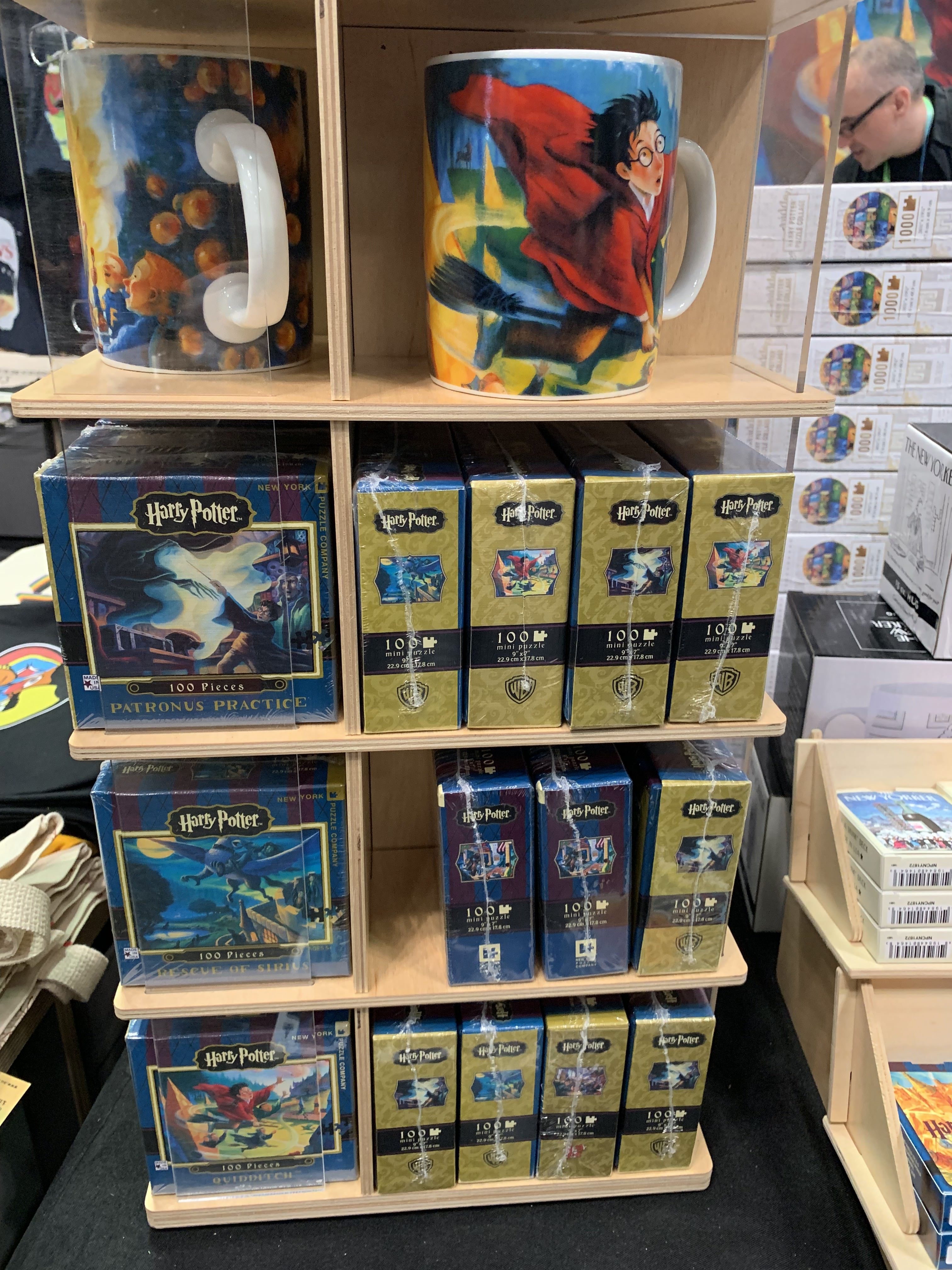 Looking for something to do on a rainy day? The New York Puzzle Company booth (#2309) has you covered! It has a large selection of Harry Potter-themed puzzles as well as mugs. It also has two beautiful decks of cards with artwork by Mary GrandPré.