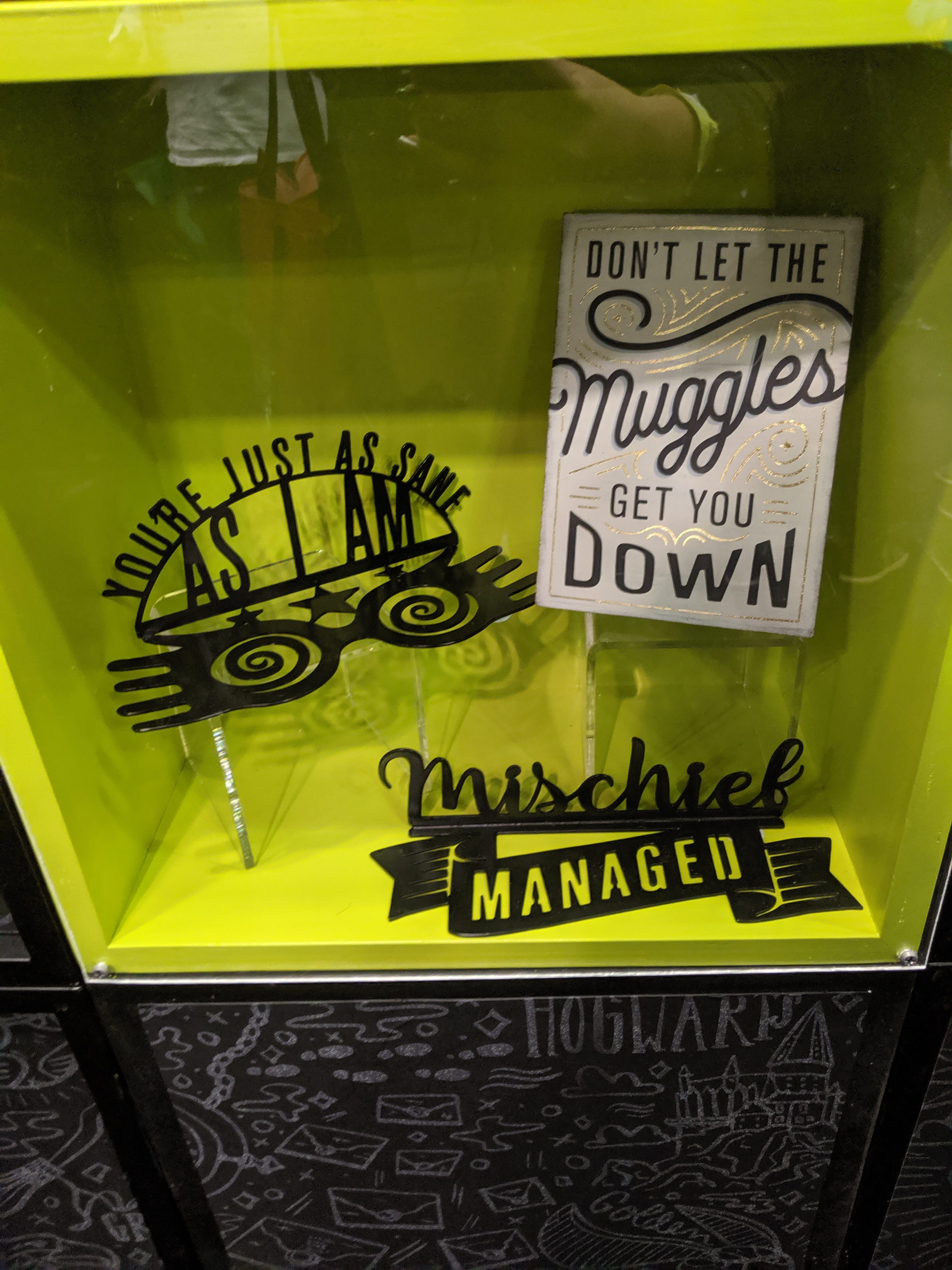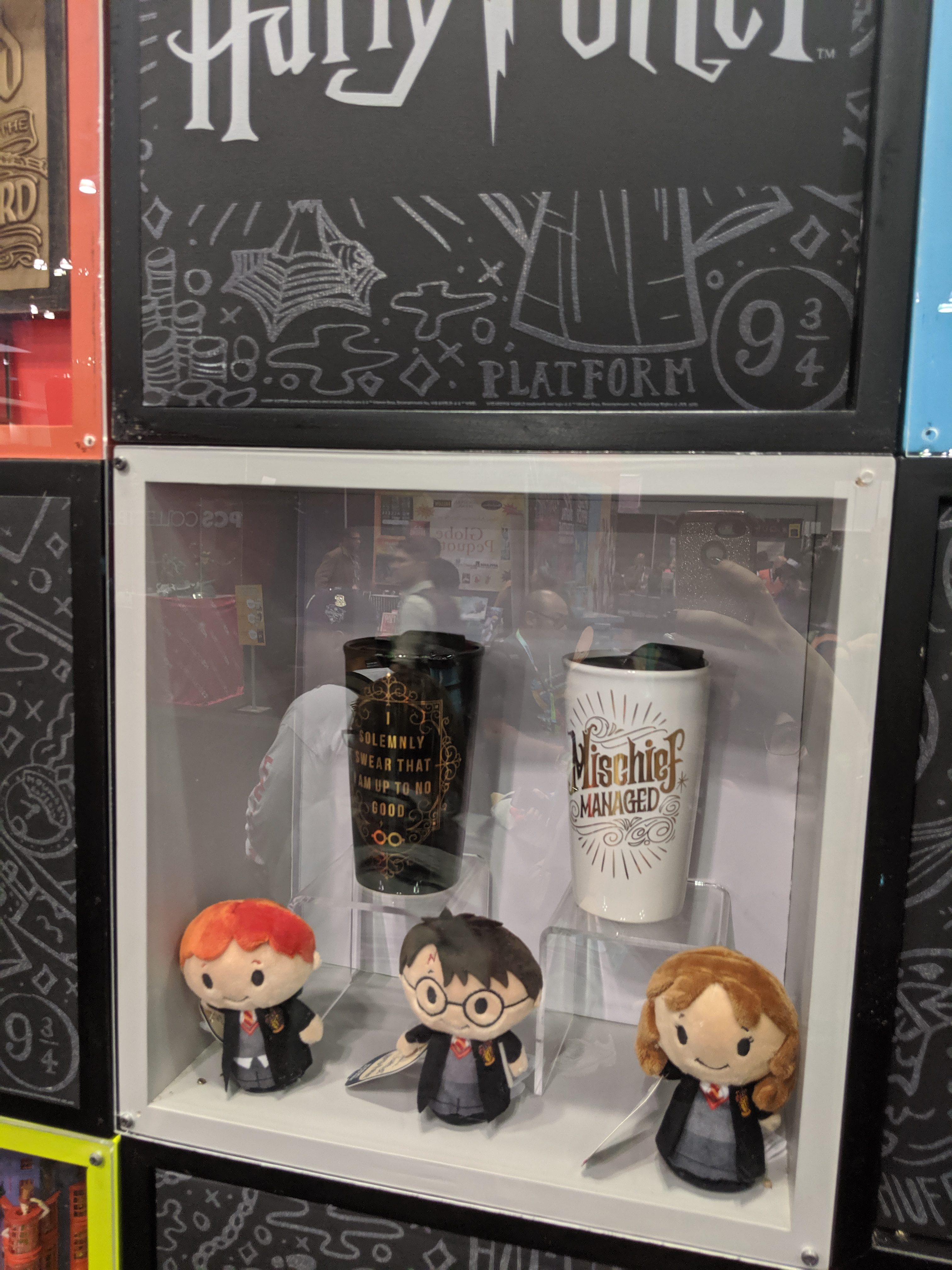 If you’re a fan of ornaments, home decor items, and those adorable itty bittys, head over to the PopMinded by Hallmark booth (#1920), where you can find Potter merch aplenty! We really loved the Time-Turner perpetual calendar, the Professor Trelawney itty bitty, and the Hogwarts Christmas Tree Topper. If you’re having trouble deciding what to purchase, we reviewed several of the items available at the booth over the summer.