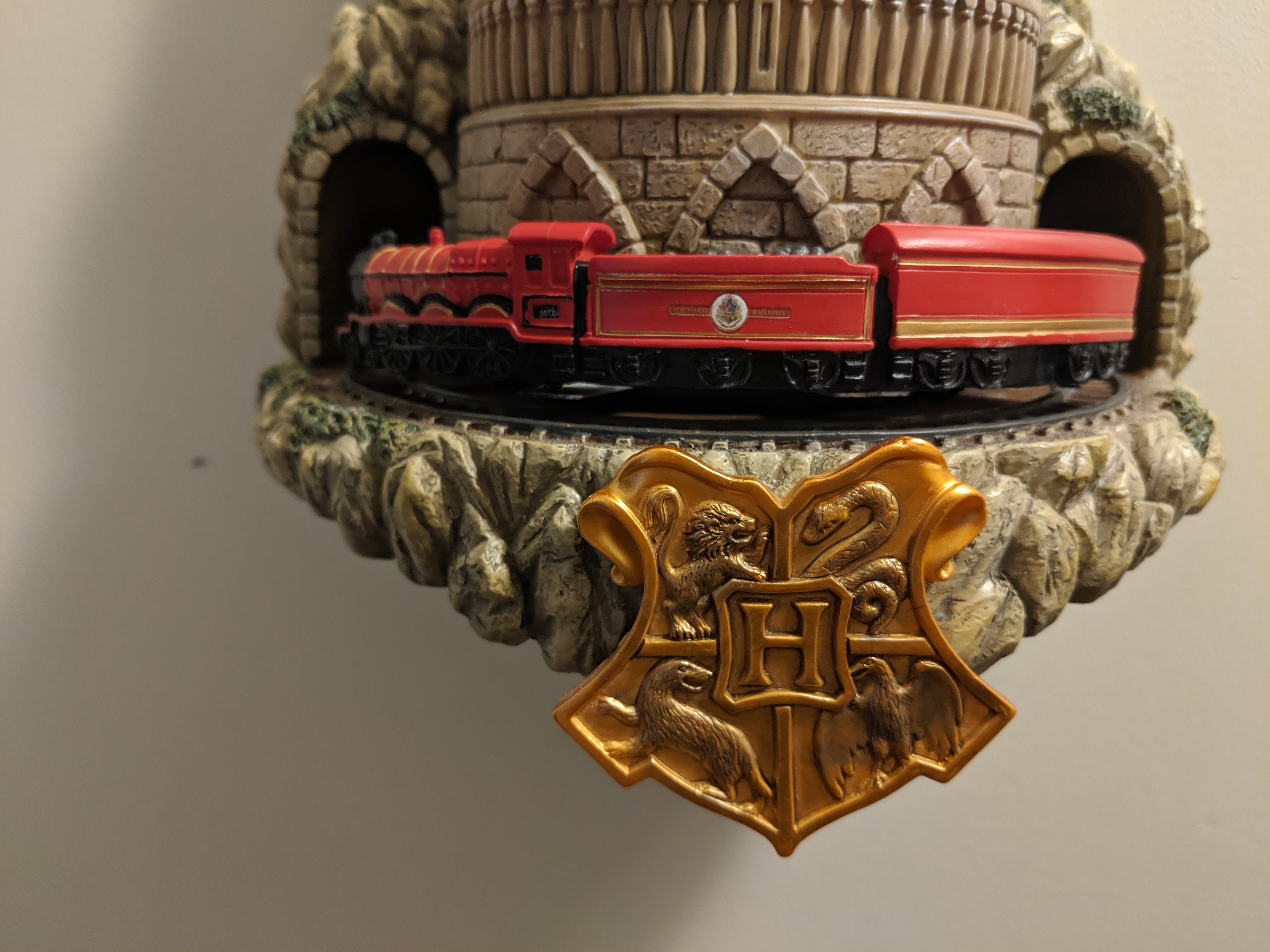 The Hogwarts Express and crest on the wall clockThe Hogwarts Express and crest on the wall clock