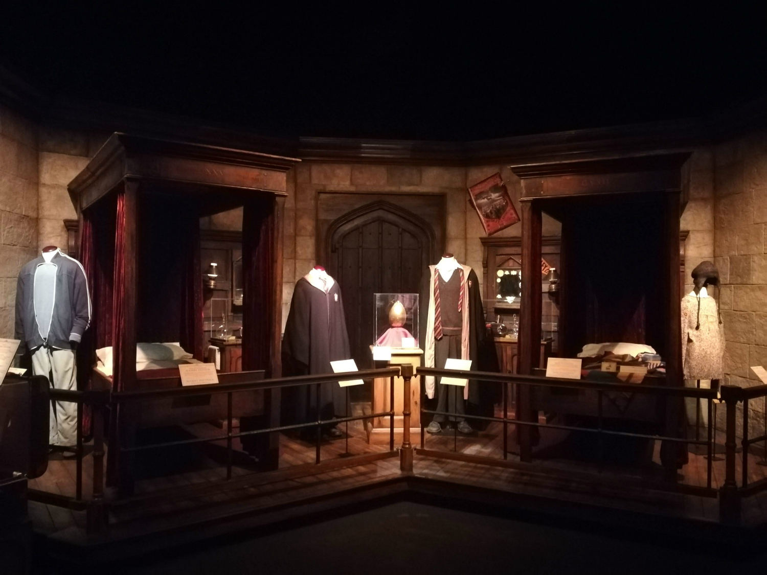 We were greeted by the Fat Lady and ended up between the Gryffindor common room and the boys’ dormitory. Some fan-favorite props are here, such as Hermione’s beaded handbag and Neville’s Mimbulus mimbletonia.