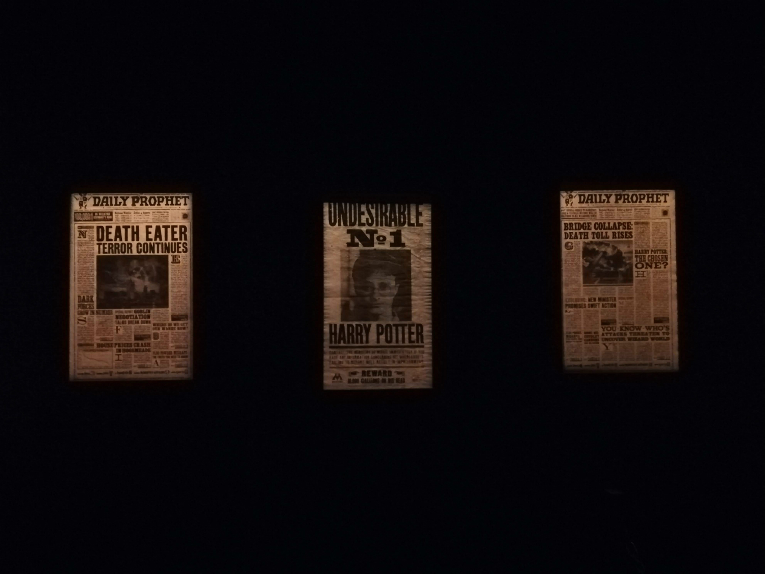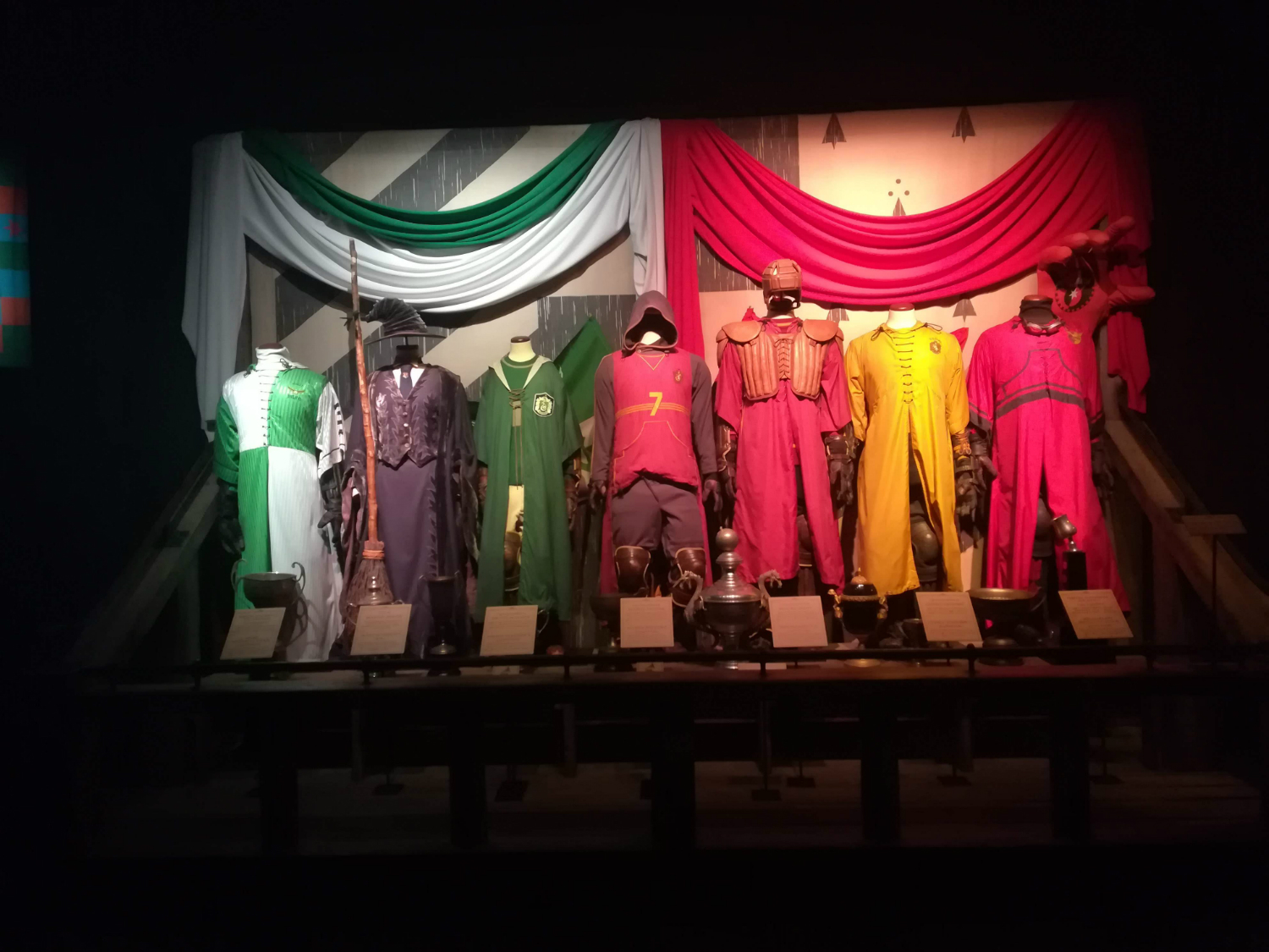 As we made our way forward, we entered a grimmer setting. Amid a foggy Forbidden Forest, we saw Buckbeak and the Hungarian Horntail. In the Dark Arts room, we encountered Voldemort’s and various Death Eaters’ costumes. We got a glimpse of a cloaked Dementor, a Petrified Colin Creevey, and the five inanimate Horcruxes.