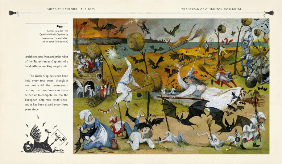 Publishing in the UK and US on 6th October 2020, Quidditch Through the Ages Illustrated Edition features showstopping artwork from Emily Gravett, twice winner of the Kate Greenaway Medal. Emily’s wildly creative imagination has conjured a cornucopia of sporting memorabilia to surprise and delight. With some items lovingly created in a dazzling range of media and infused with her trademark visual wit, these charming and funny artworks are the perfect pairing for J.K. Rowling’s humorous insights into the magical, airborne sport.