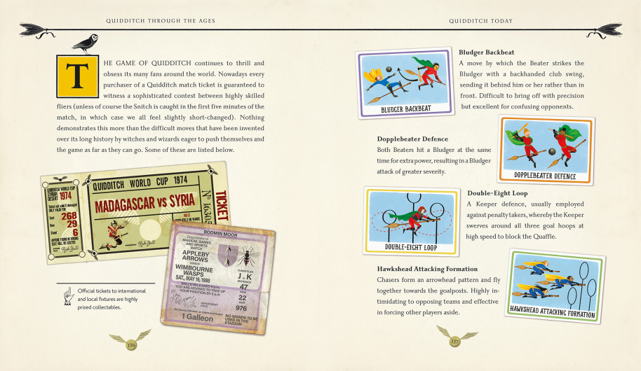 Quidditch Through the Ages first appears in Harry Potter and the Philosopher’s Stone. After catching Harry Potter with a copy, it is also the reason that Professor Snape invents the rule that no library books are allowed outside of Hogwarts School. Harry Potter and the Philosopher’s Stone continues to mesmerise readers and in 2019 was the best[-]selling backlist title across all children’s publishing with over 177,000 copies sold. The full Harry Potter series took the top seven spots in a 2020 chart of favourite book as chosen by primary school students and was recently selected by thousands of young Blue Peter viewers as its ultimate Blue Peter Book Award winner.