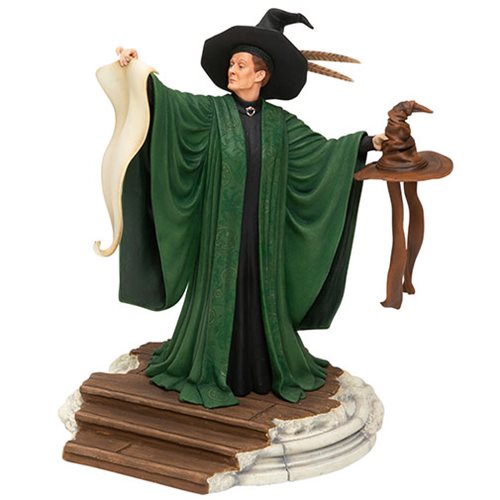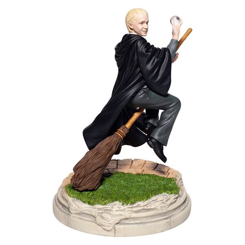 Five more statues are on their way. The Harry Potter Professor Severus Snape Statue, featuring Snape looking personally affronted alongside a portion of table holding a cauldron and a candle, is expected for release this month, as is the Harry Potter Professor McGonagall Statue, depicting our favorite Transfiguration professor in her gorgeous green robes. She's holding the Sorting Hat as she prepares to call a new student's name from her list during the Sorting Ceremony. Set for an August release are the Wizarding World of Harry Potter Hagrid and Norberta Statue, featuring Hagrid looking adoringly at his newly hatched dragon (which, at that time, was still named Norbert), and the Wizarding World of Harry Potter Harry and Draco Quidditch Year Two Statues. Harry's statue depicts the boy wizard flying through the frame of a spectator tower as he attempts to escape the rogue Bludger from Harry Potter and the Chamber of Secrets. Draco's statue is also listed as portraying his second year of Quidditch, but we're a bit confused there, since it looks more like he's absconding with Neville Longbottom's Remembrall, which, of course, happened during his first year. Either way, he looks cool!