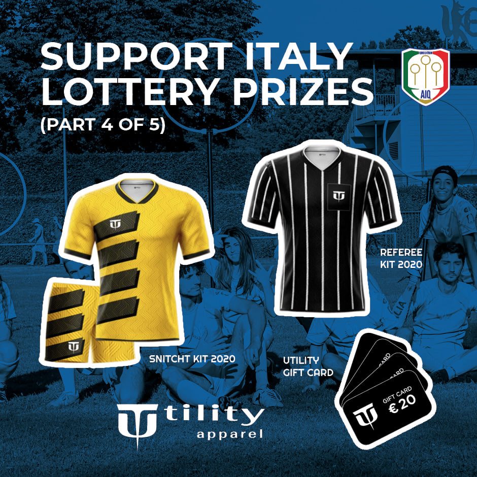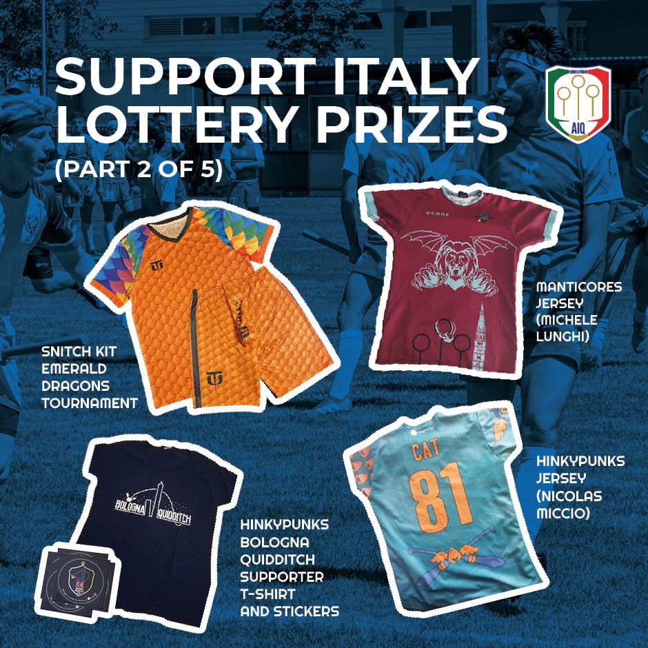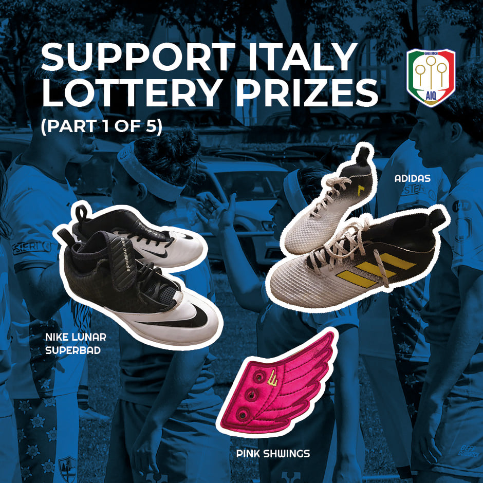 AIQ has organized a lottery, and it’s open until September 30. If you want to participate, you can buy 10 tickets for €5 and try to win something. The prizes are Italian team jersey kits, a Snitch kit and referee kit by Utility, an autograph of Seeker Sami Fekkat from Titans Paris, and the United States headband, among others.
