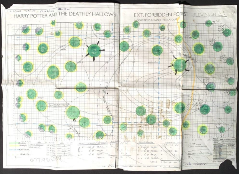 The technical drawings are for sets that were used across various Potter movies, from the Reptile House and Hogwarts exteriors in Harry Potter and the Sorcerer’s Stone to the Forbidden Forrest layout for the final movies. Most of the technical drawings are expected to reach between $50 and $200.