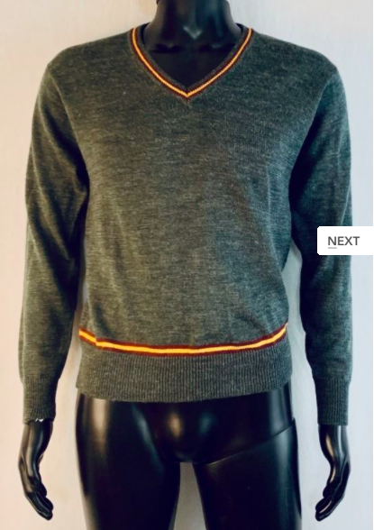 There a few costume items up for sale, including two Hogwarts sweaters, one of which was possibly worn by Daniel Radcliffe. The other sweater is listed as a Gryffindor sweater, but we think it looks more like it belongs to a student in Hufflepuff.