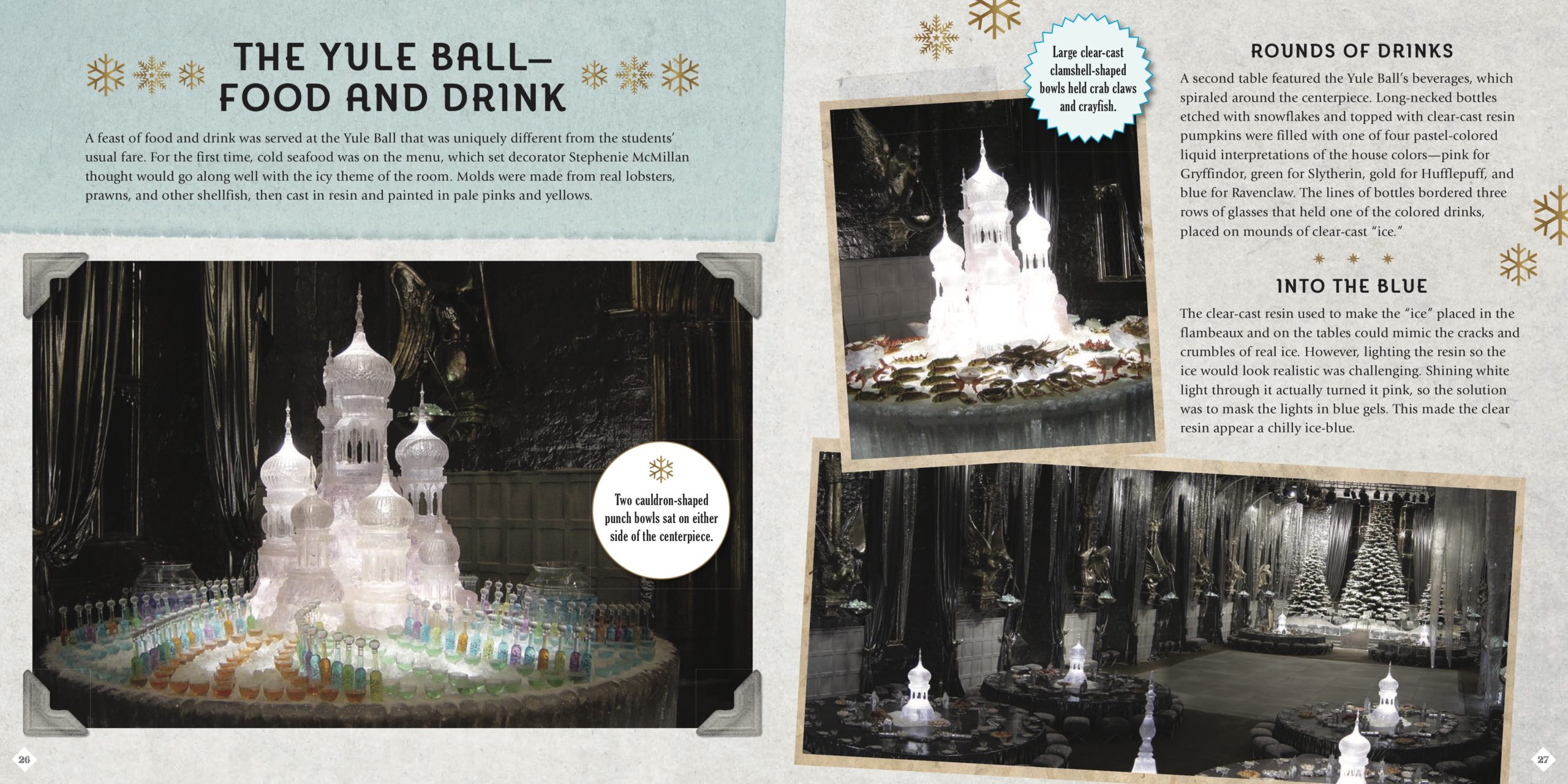 The day that I got this book, I could not wait to dive in. Christmas at Hogwarts is a dream, and we definitely need some magical moments right now – the more, the better! Let me start by saying that not only is this book a wonderful gift, but it is also full of magical surprises. It is a beautiful hardcover with slightly raised wording and blue accents to the snowy winter light. As soon as you open the cover, you are greeted by the most crystal-clear images from the movie; it is as if you are standing right there immersed with the characters. The book goes into great detail about the decorating of Hogwarts, the trees, adventures, the Yule Ball, the Slug Club Christmas party, Christmas at various places in the wizarding world, and more.