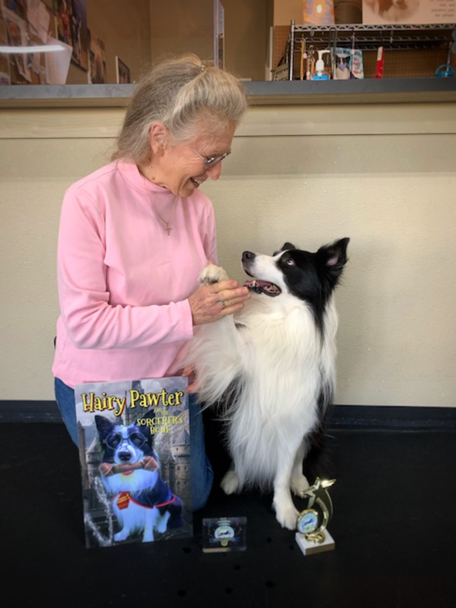 Snyder has been a dog handler for many years, competing in various AKC competitions. The idea for Hairy Pawter came about one Halloween when she purchased a Harry Potter costume for Amos. After a photo shoot and an artist retouching, she got the idea to create a trick dog routine based on the first film.