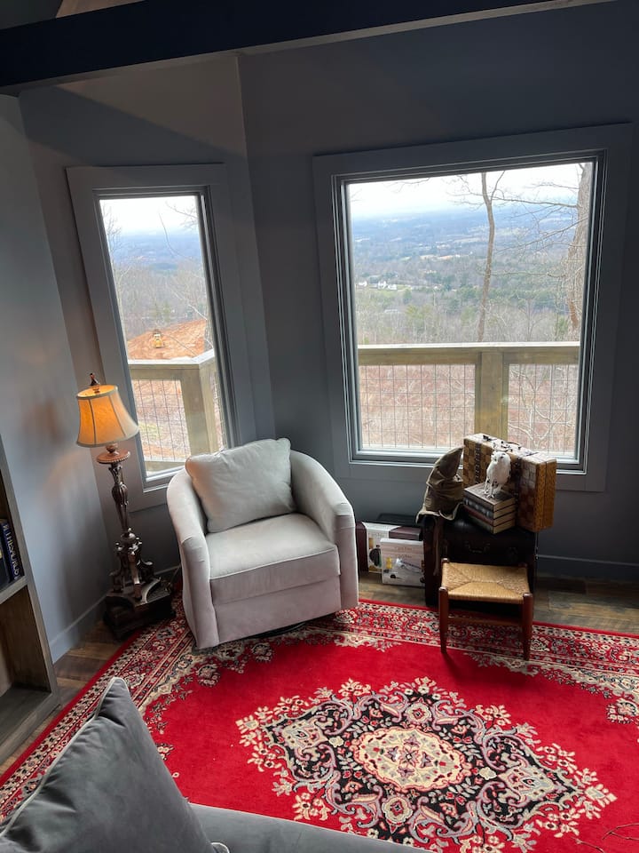 The tree house is part of a series of properties owned by Caroline & Mike called Treehouses of Serenity. There are four other tree houses in the series, as well as a hobbit hole for Lord of the Rings fans to enjoy! Each of these accommodations has incredible hosts and large windows to fully capture the beauty of the mountains.