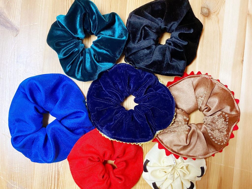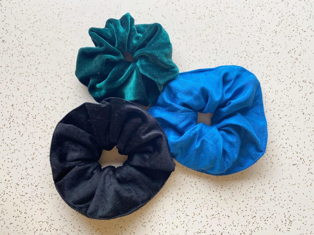 I taught myself to make scrunchies specifically for this DIY, and since then I have become a one-woman scrunchie-making machine. Pretty much everyone with hair that I know received a scrunchie from me for Christmas, and my personal collection is starting to get a little out of control. In terms of wear, I find that these have held up perfectly. The only sign of use I can see is a bit of stretching-out of the hair elastic inside the scrunchies I wear most frequently. I’m not sure that there’s really a solution to this – since it’s also something that happens with commercial scrunchies – except perhaps using a thicker/heavier hair elastic when making them.