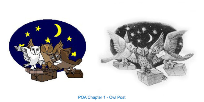 My experience was wholly pleasant. I had a lot of fun drawing owls and the places of the wizarding world, and in those rare instances when the icon chosen by Mary GrandPré to represent the chapter did not feel right to me, I chose something different and made it up just the same. For example, the chapter “The Dueling Club” from Harry Potter and the Chamber of Secrets was such a large Gilderoy Lockhart moment that I chose to draw a full-bodied Gilderoy over Nearly Headless Nick. Sorry, Sir Nicholas!