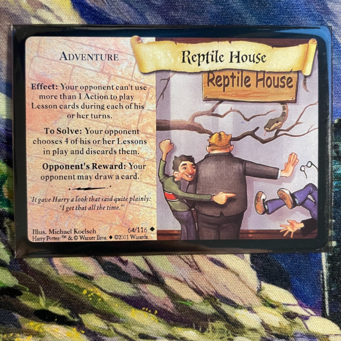 Diagon Alley, number four, Privet Drive, and Gringotts are memorable locations in Harry Potter and the Sorcerer’s Stone. We can all remember the opening line that contributed to our curiosity and love of the books “Mr. and Mrs. Dursley of number four, Privet Drive, were proud to say that they were perfectly normal, thank you very much” (SS 1). We learned that this poor boy, Harry Potter, lived with his miserable Aunt and Uncle until Rubeus Hagrid came to collect him when they were hiding in the hut on the rock. These locations, witches, wizards, and Muggles, are brilliantly crafted in the Harry Potter Trading Card Game (HPTCG) by the many creative artists who worked on these cards years ago.
