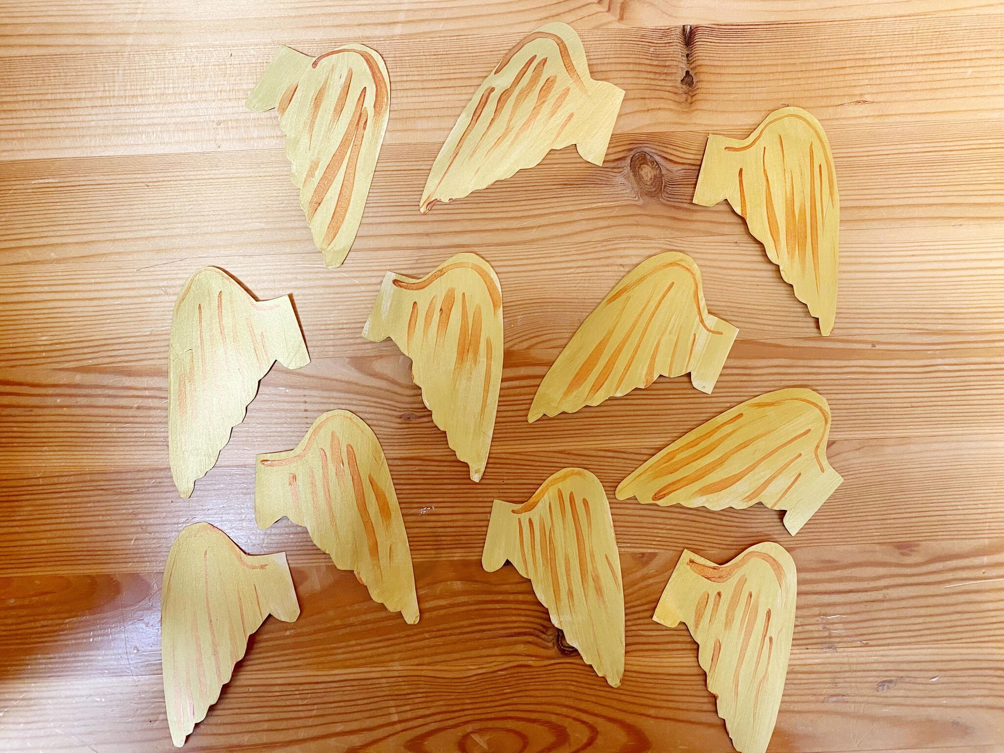 Step 2: While your Snitches are drying, you can get started on the wings. I used the wing template in the gallery below as a guideline. If you’d like to use the same one, print it and set your printer settings to resize the image to 2×3 inches. Cut out your template, then trace it onto a sheet of cardstock. Make sure to trace twice as many wings as you have Snitches since they’ll each need two!