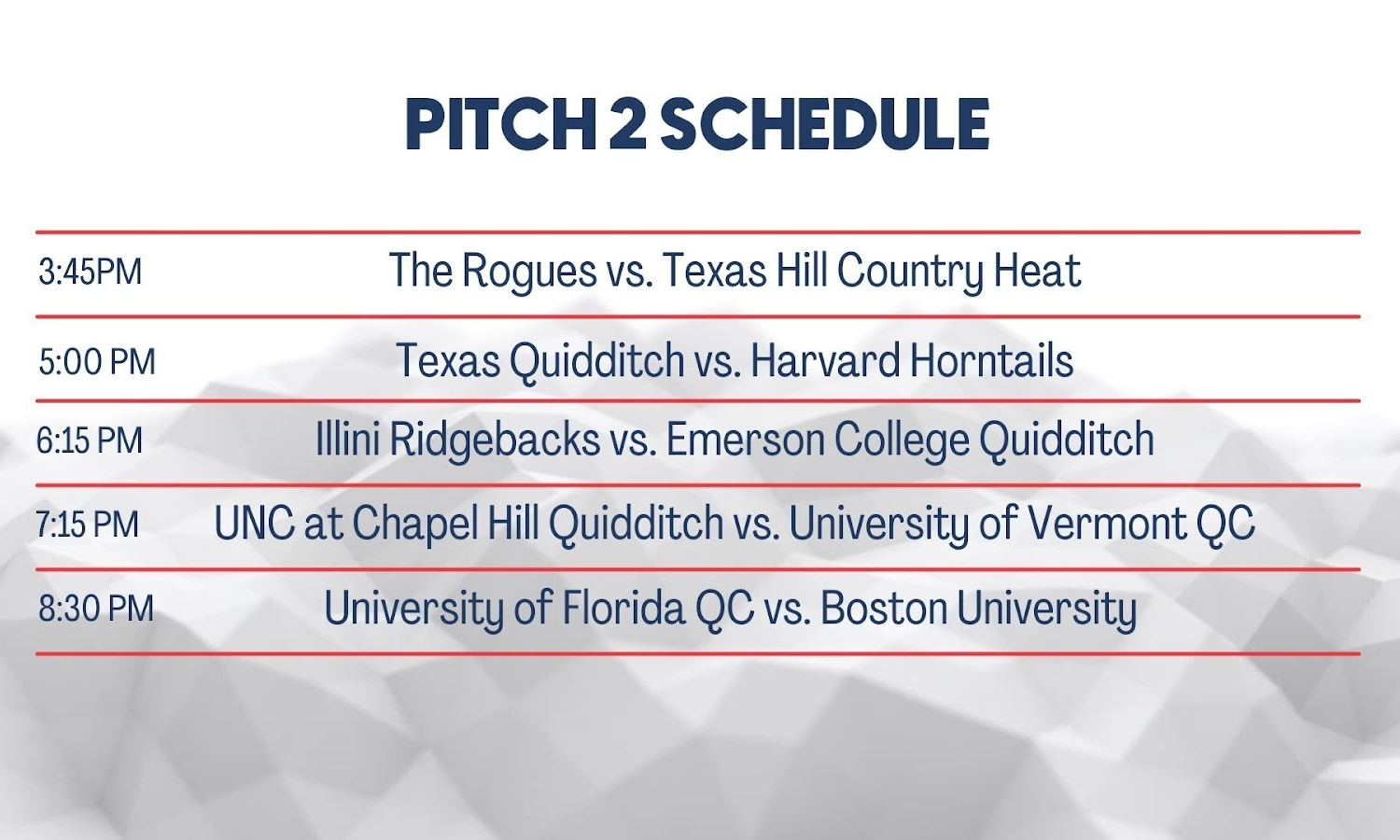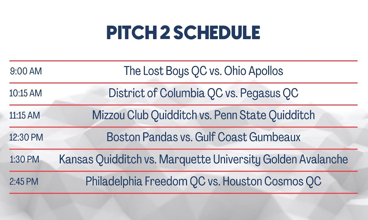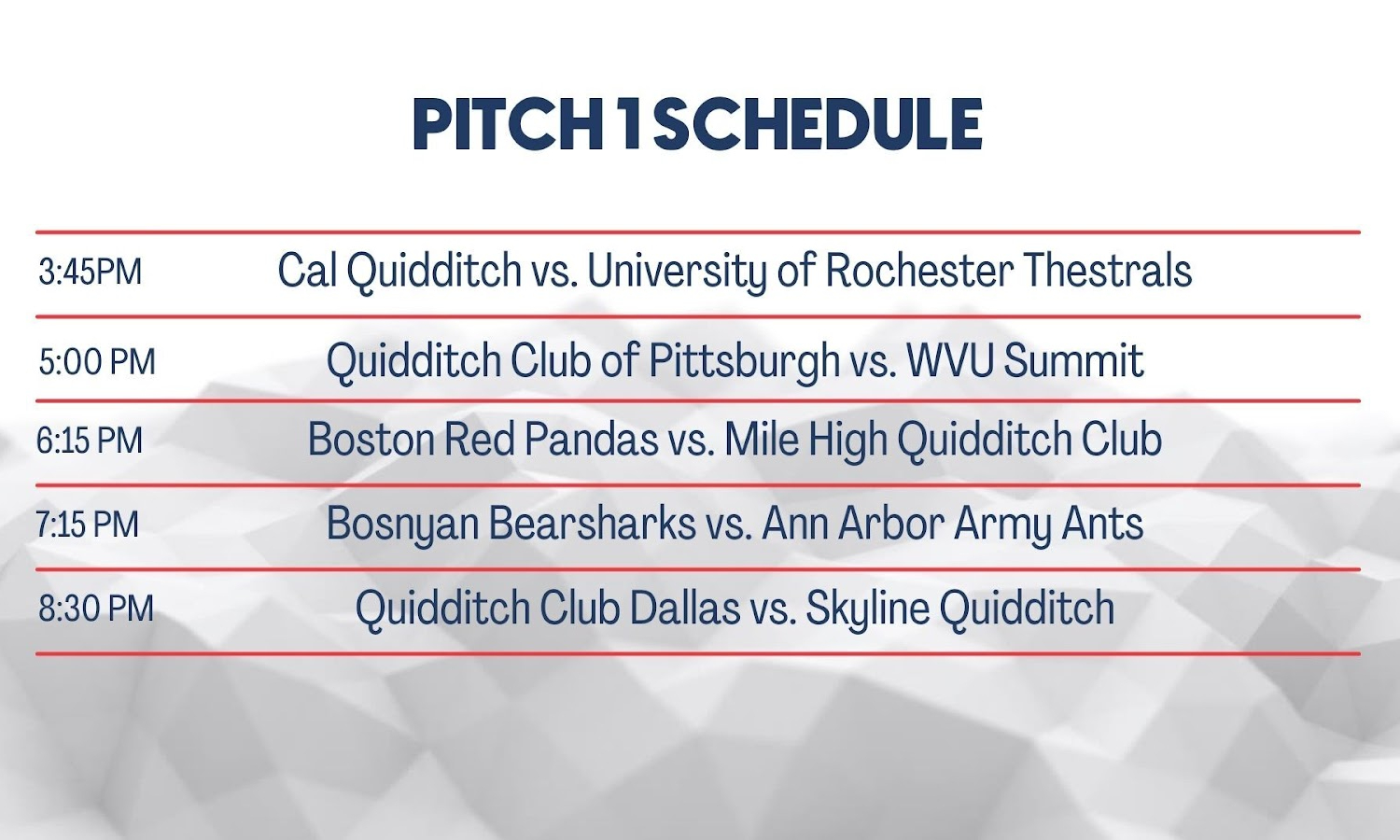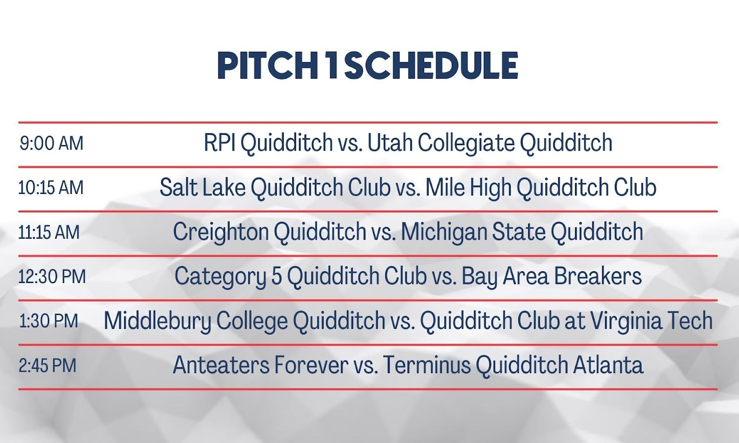 The schedule for Saturday’s games has been released. All games from Pitches 1 and 2 will be streamed on Twitch.