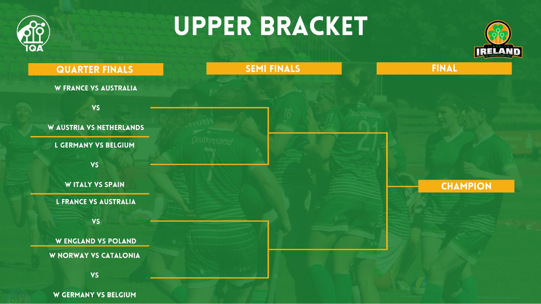 The participating teams were divided into four groups ahead of the tournament. The first day was standard group play. Based on the results and a live draw at the end of the livestream, teams were paired together for one match. These matches were played at the start of the second day and determined who would go into which bracket. There should have been three brackets – the championship bracket, consolation bracket, and lower consolation bracket – but the post from the Facebook page for the IQA European Games shows us only the upper and lower brackets.