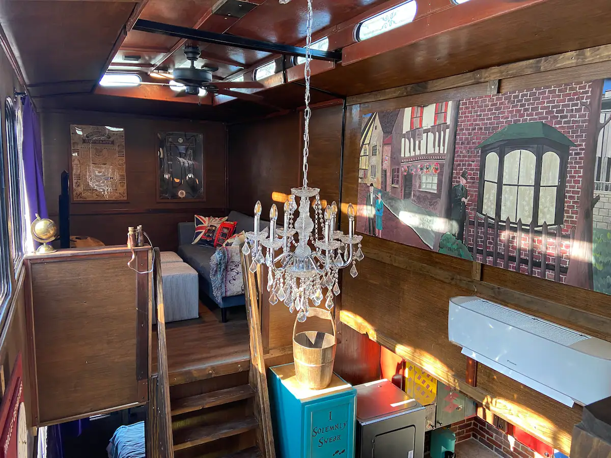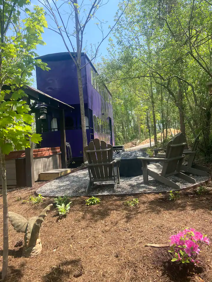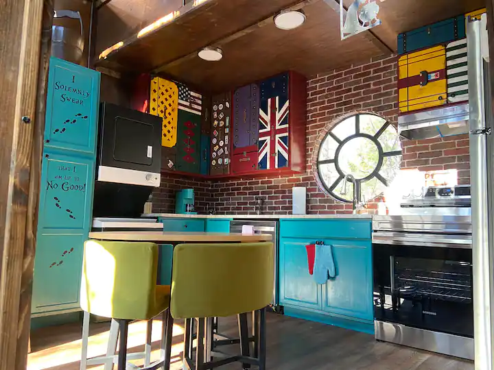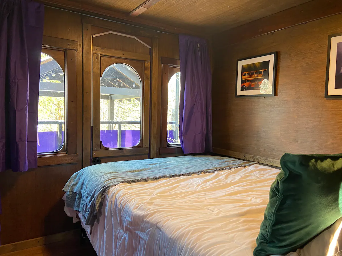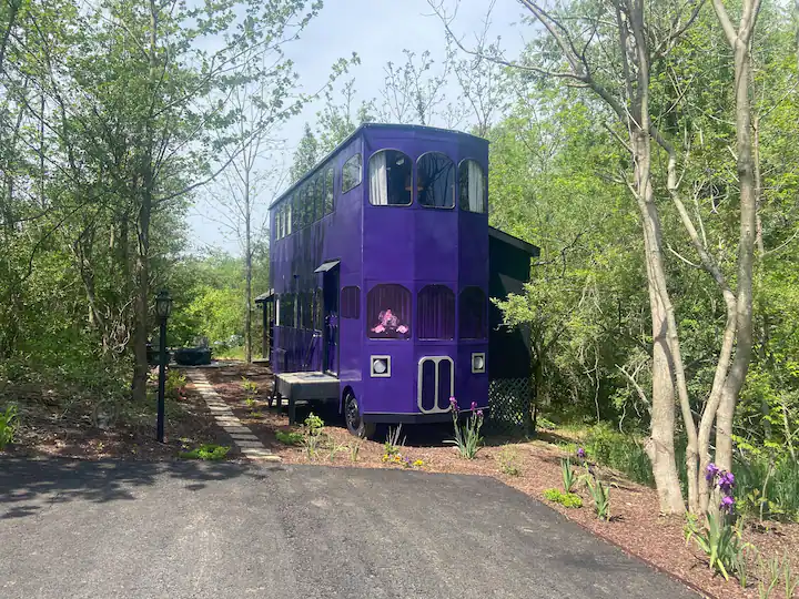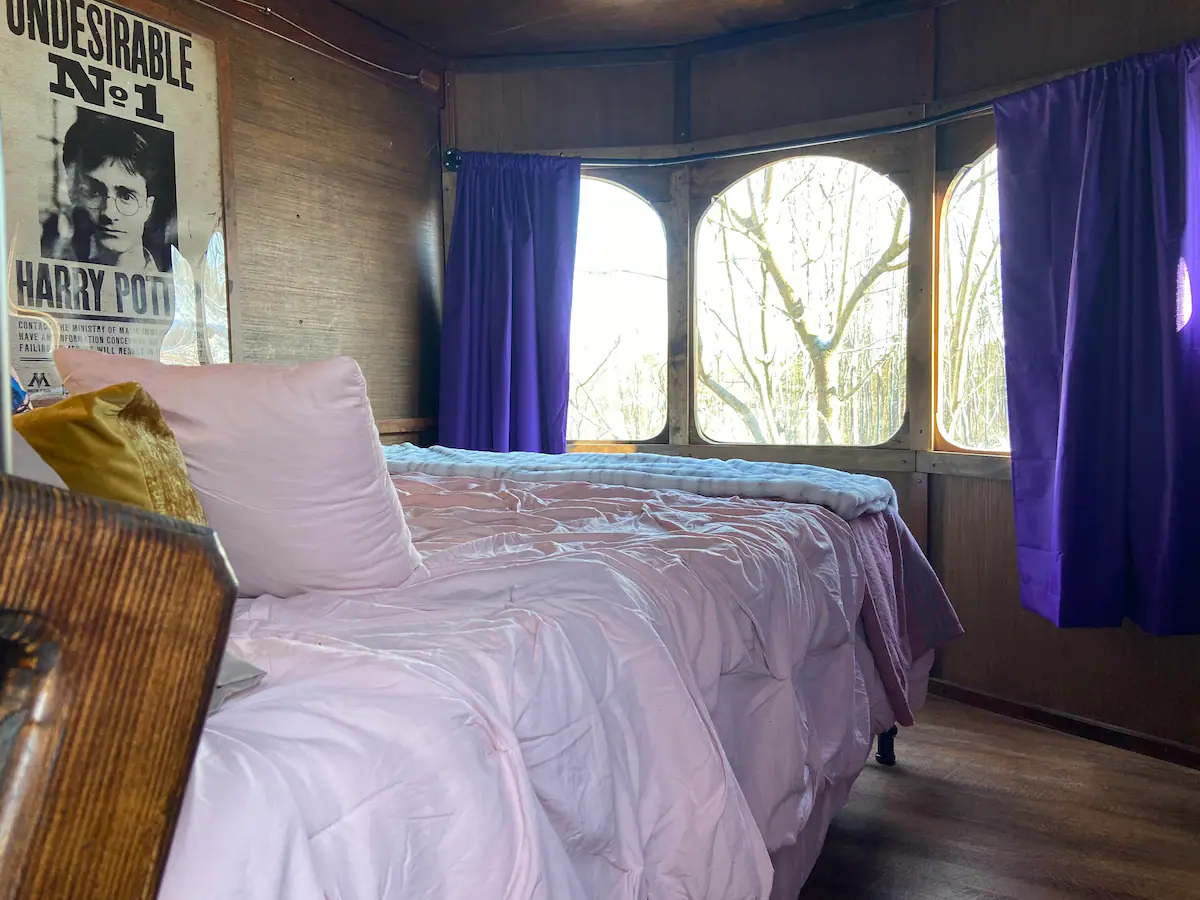 The Knight Bus, which is located close to Gatlinburg, Pigeon Forge, Dollywood, and the Great Smoky Mountains National Park in Sevier County, was created by the Forgotten Forest, “a new rental and residential community where fantasy meets reality.” While the community is currently under construction, it will eventually include castles, forest burrows, treehouses, and magical houses. The Knight Bus is the first fully finished home in the forest.