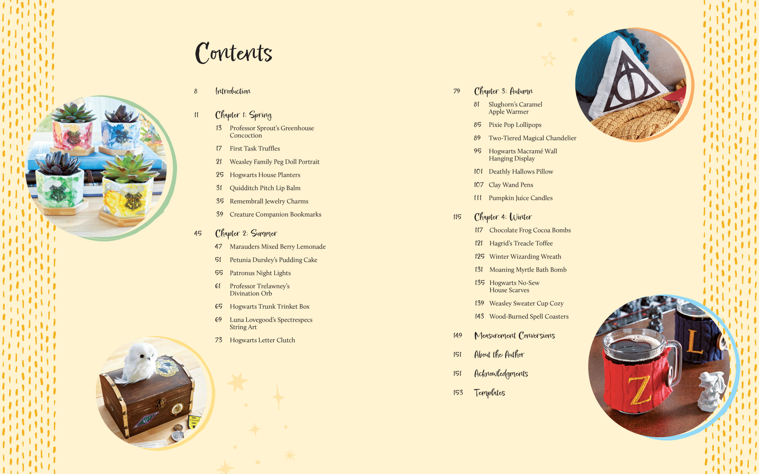 Bring the magic of the Wizarding World home with Harry Potter: Homemade. Inspired by the coziest moments in the Potter films, it includes over 25 crafts, home projects, and recipes. The 160-page book is divided into four sections, one for each season. Some of the projects included are candle-making, quilting, jam-making, wreaths, ceramics, and macramé.