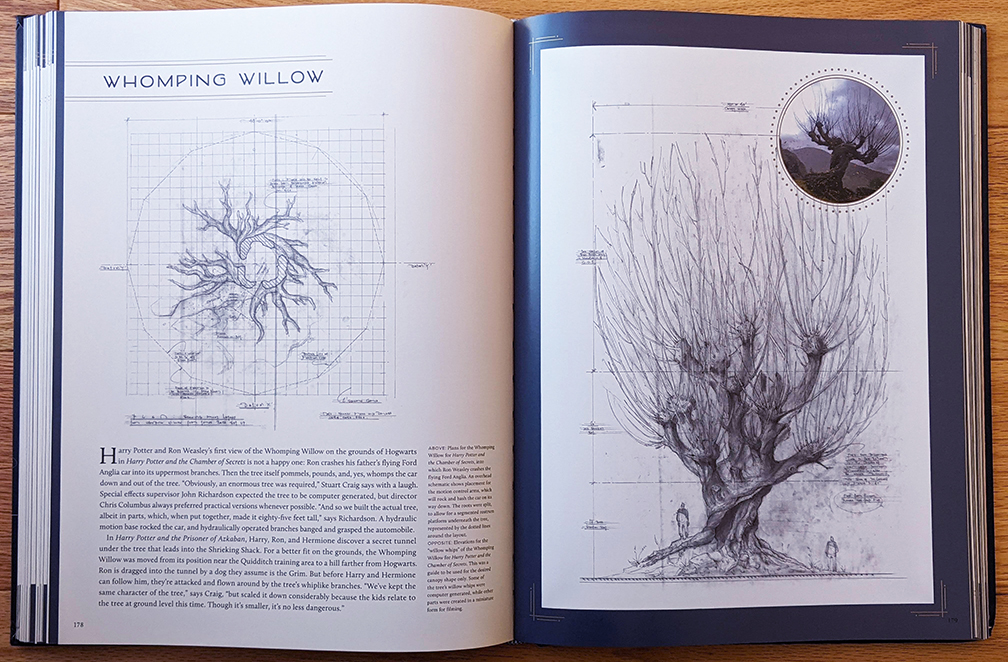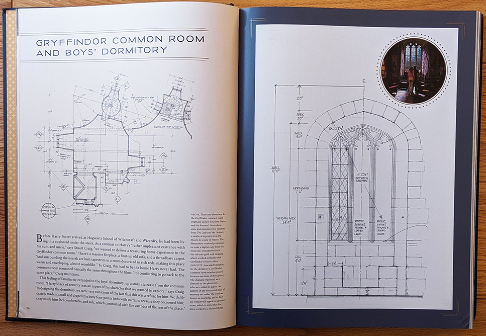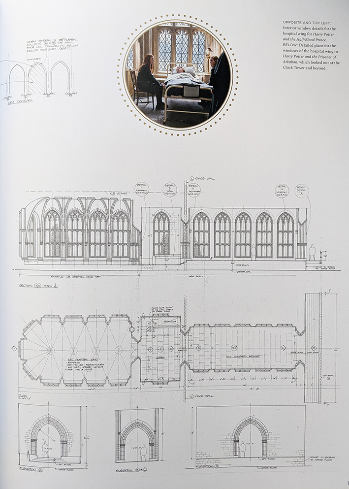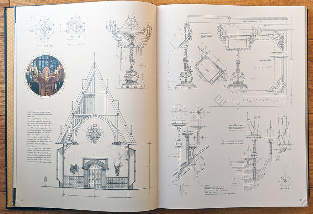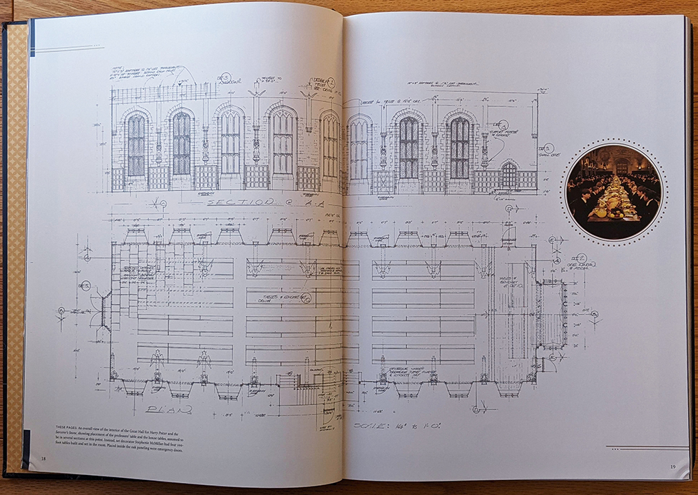 Did you know they often had to build doors into open archways at the castles and abbeys where they filmed many of the classroom scenes? How about that the wood-paneled walls of the Charms classroom — part of a real-life London boarding school built in 1615 — still showed the carved marks from former students, including famous figures like Lord Byron? These and many other never-before-seen facts are waiting in between the various technical drawings. That’s right, die-hard Potter fans; this book contains a wealth of information that’s actually new (to the public), even if you’ve been following every scrap of released content for 20 years.