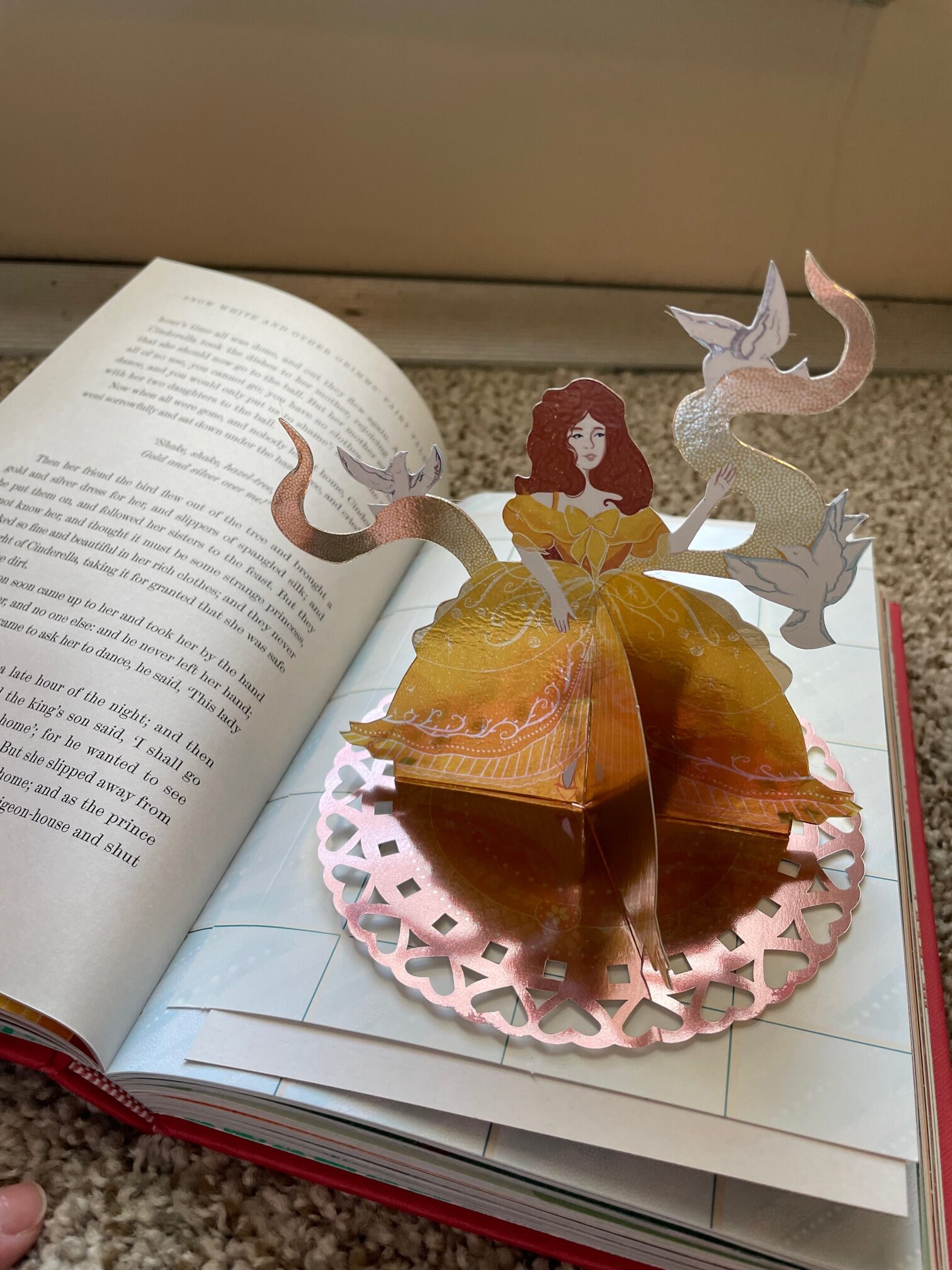 Of course, these MinaLima editions are best known for their interactive elements, and this book does not disappoint. From a full forest diorama to a graceful pop-up tower (complete with ascending prince) to a stunning golden Cinderella arriving at the ball, these elements truly set this book apart from any other. They make the reading experience that much more magical.