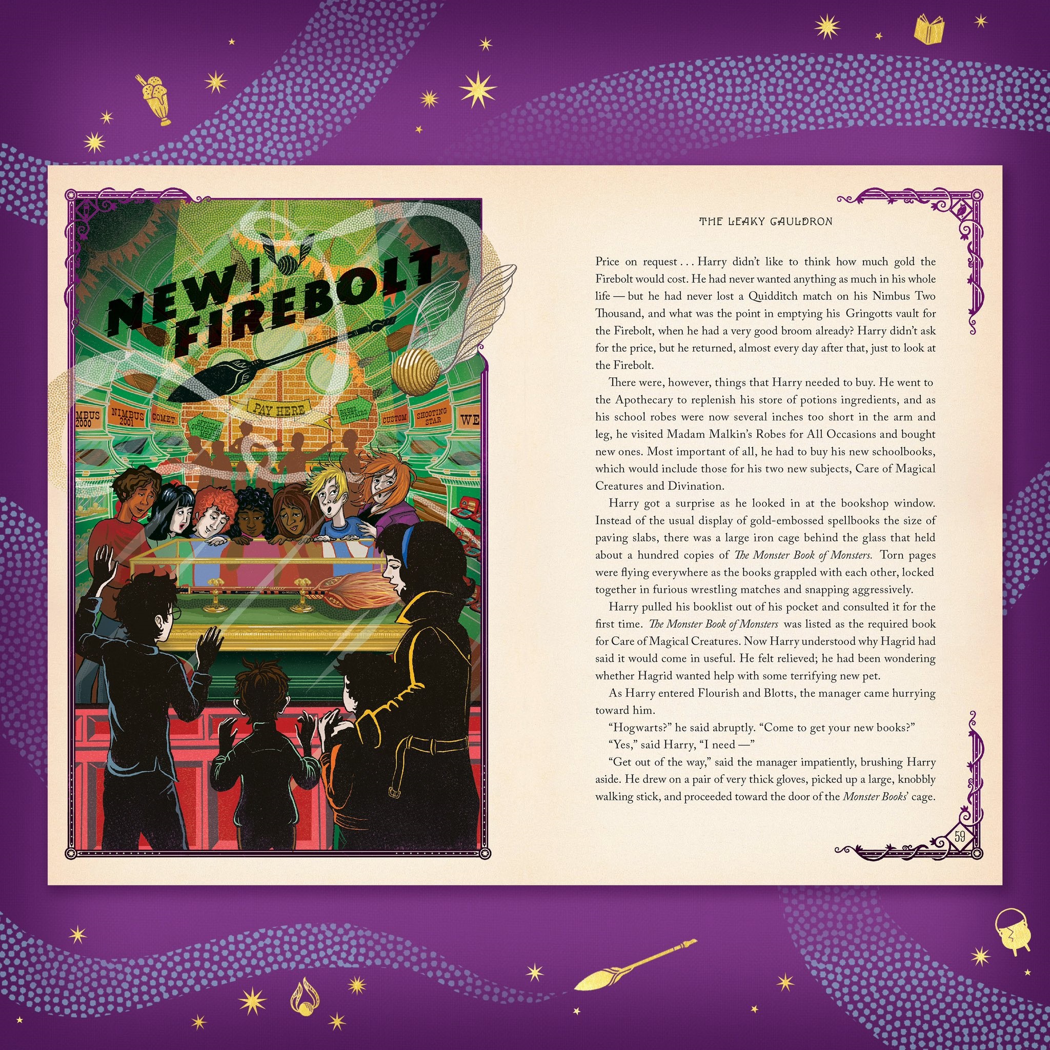 The hardcover book features over 190 illustrations, eight “interactive paper-engineered elements,” and gold foiling with embossed details. Published by Bloomsbury in the United Kingdom and Scholastic in the United States, this third book in the illustrated series comes in at 480 pages.
