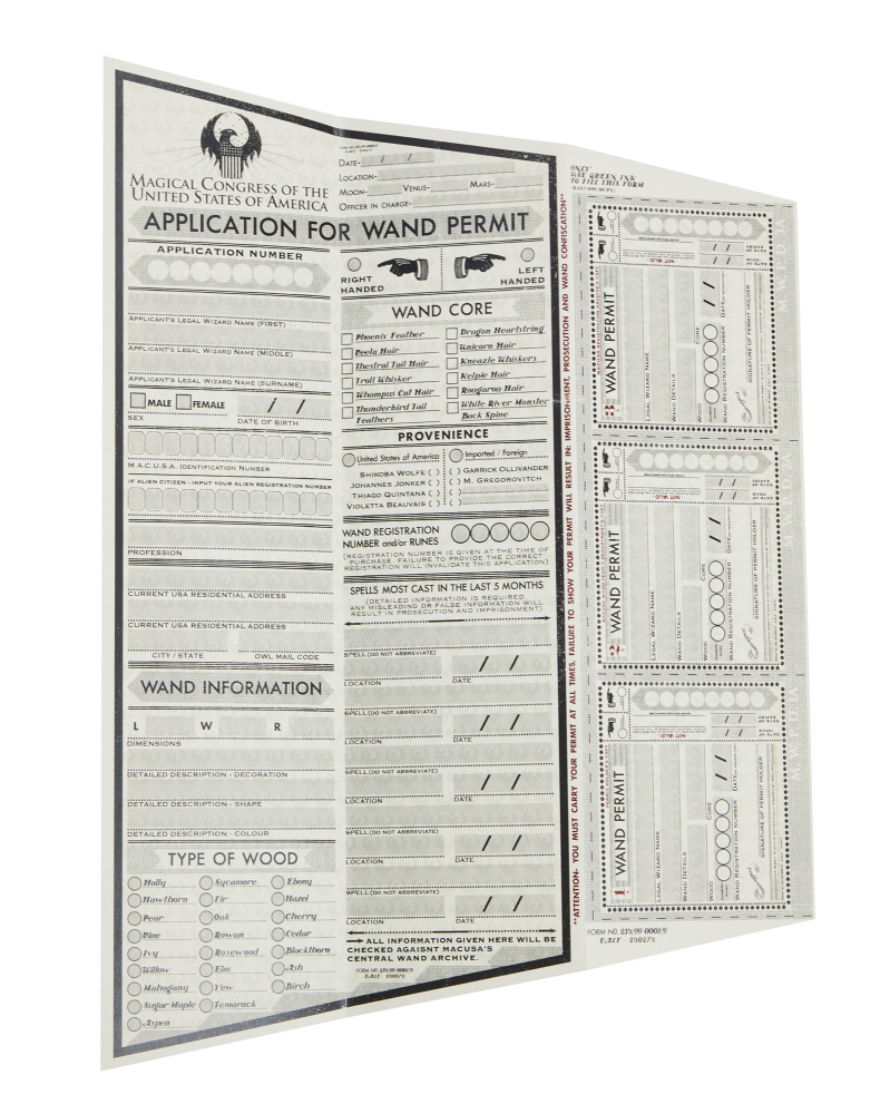 Props from the Fantastic Beasts series will also be up for grabs. Issues of both the New York Ghost and the Wizard’s Voice are available, alongside a copy of the New York Clarion that comes with various wizarding world documents, including a wand permit application form.