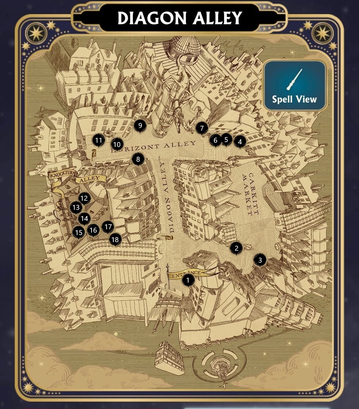 With the addition of Epic Universe to the Universal Orlando Resort app, we also have way more details about the Ministry of Magic park. First of all, we can now see where guests will be able to use the new wands to cast spells around the park. There are 14 spots in total in the Ministry of Magic park, with a map showing their exact locations available both on the app and on paper with a wand purchase.