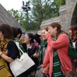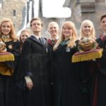列はエバナさんとトムさんを先頭に、ホグワーツへと続いていきました。 ハリー・ポッターを愛する様々な年齢、性別、人種の人達が集い、遂にハリー・ポ ッターの世界に足を踏み入れたのです。 ホグズミード村を歩いている最中、私は二人のファンの方々にお話を伺う事がで きました。注目の集まるホグワーツ城内のアトラクション、Harry Potter and the Forbidden Journeyの魅力的な点を伺うと、細部まで細かく作られていた事、という 答えを頂きました。また、アトラクションに乗り込む前に見る事ができる「組み分け 帽」は、「これから乗るんだ!」というワクワク感を楽しめたというコメントも頂き ました。