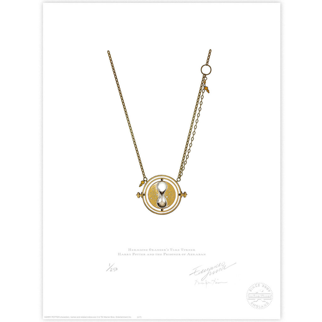 Fans already know MinaLima’s work is consistently gorgeous, and these prints are no exception! The new range of prints spans props from Harry Potter and the Prisoner of Azkaban to Harry Potter and the Deathly Hallows – Part 2 and includes Hermione’s Time-Turner, Professor Slughorn’s hourglass, and several others. Check out the images below to see what’s available!
