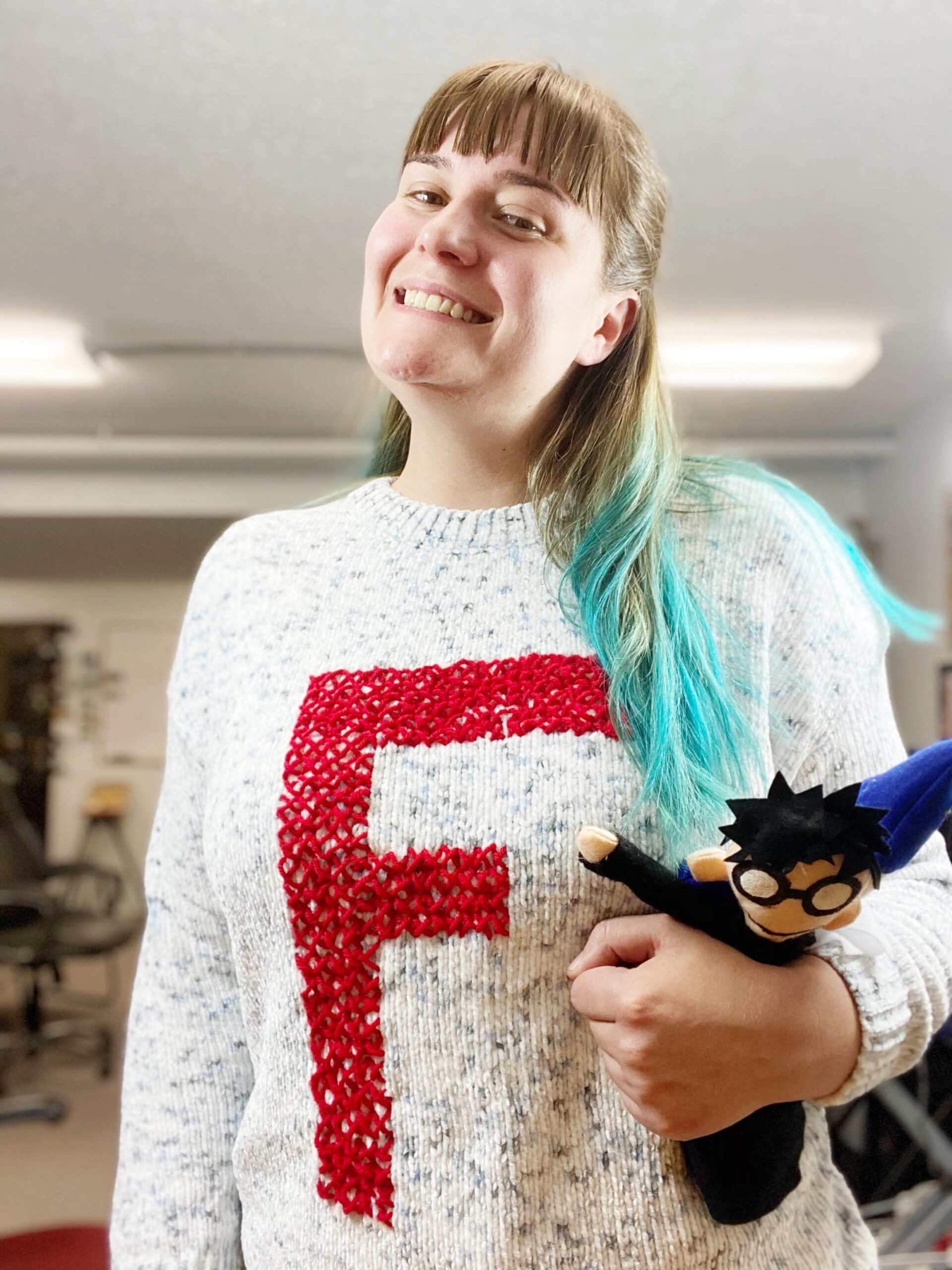 Full disclosure – I have not worn my Weasley jumper very much. This doesn’t have anything to do with how the cross-stitching held up; instead, it’s because of my choice of the sweater to cross-stitch on. It’s a bit big and made from really synthetic yarn, so I just don’t find it super comfortable to wear. The stitching is looking great, though, and this is a technique I have used many times before. Instead of a current picture of my Weasley jumper, here is a picture of another sweater I cross-stitched almost seven years ago and how it looks today. You can see that the yarn gets a bit fuzzy after wearing, but this is also a piece that has gone through the washing machine a few times. Generally, I would recommend spot-washing or handwashing your Weasley jumper to keep this from happening, but even so, I think it’s held up really well.